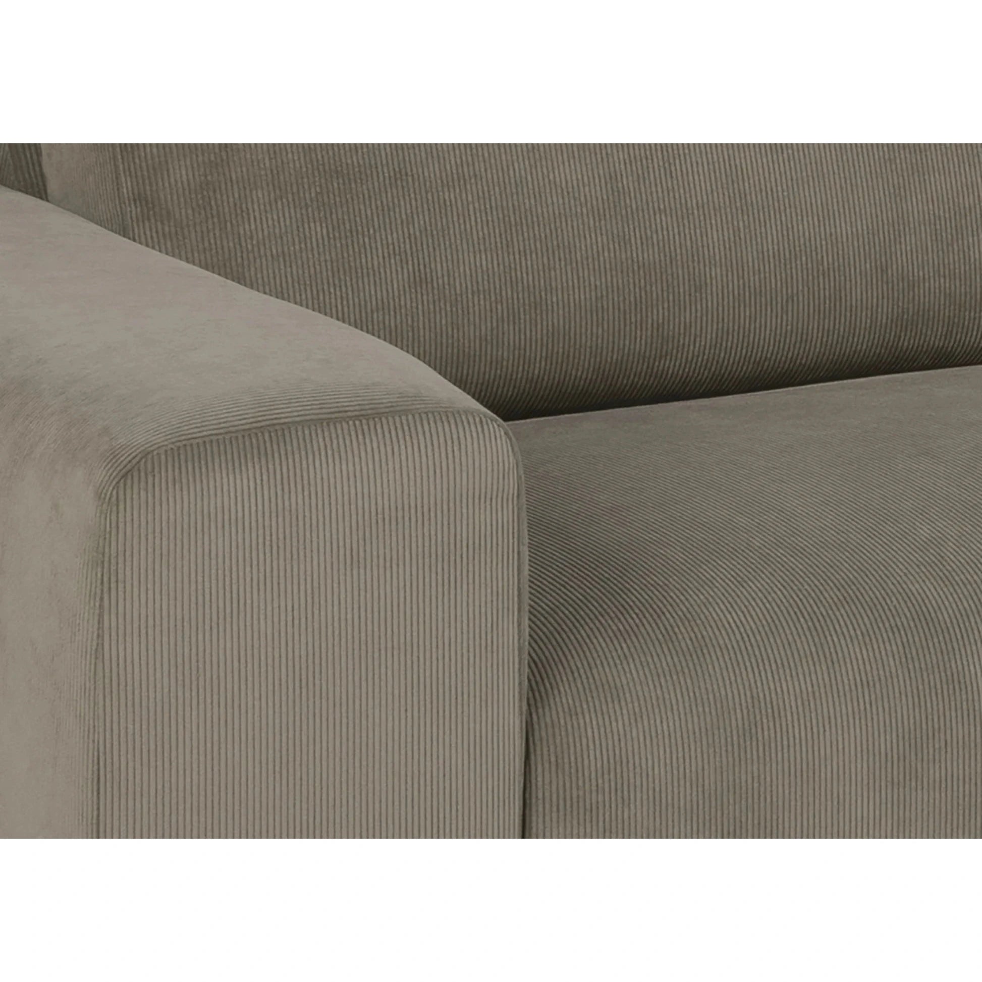 Kompakt og stilren Emerson 3-seters sofa med sjeselong fra A-Møbler. Trukket i beige kordfløyelsstoff, gir denne sofaen et moderne og tidløst uttrykk med myke linjer og en lett, luftig design.