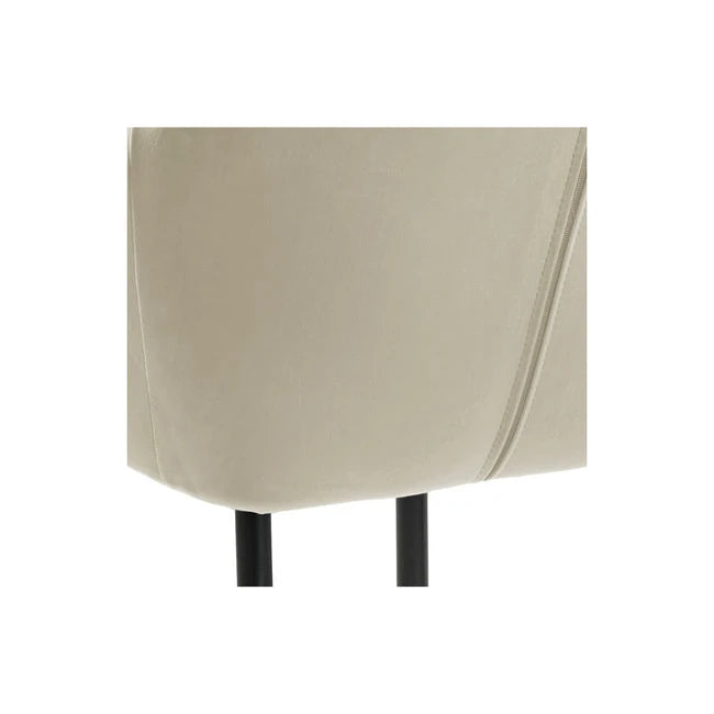 Spisestol med beige velourtrekk og svart metallunderstell. Den polstrede sitteflaten og de mykt avrundede armene gir en behagelig sitteopplevelse. Stolens klassiske stil og delikate farge gjør den lett å integrere i ulike interiørstiler.