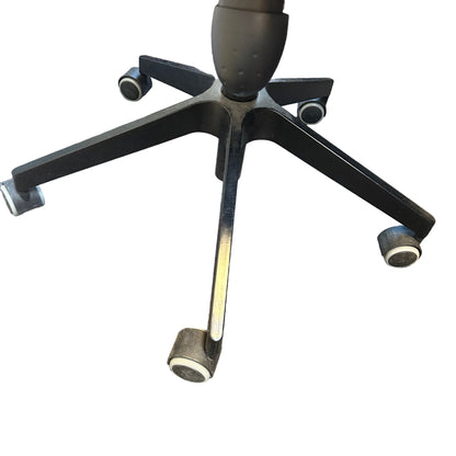 Stolen har noe slitasje på stoffet og armlenene, men er ellers i god stand og fullt funksjonell.