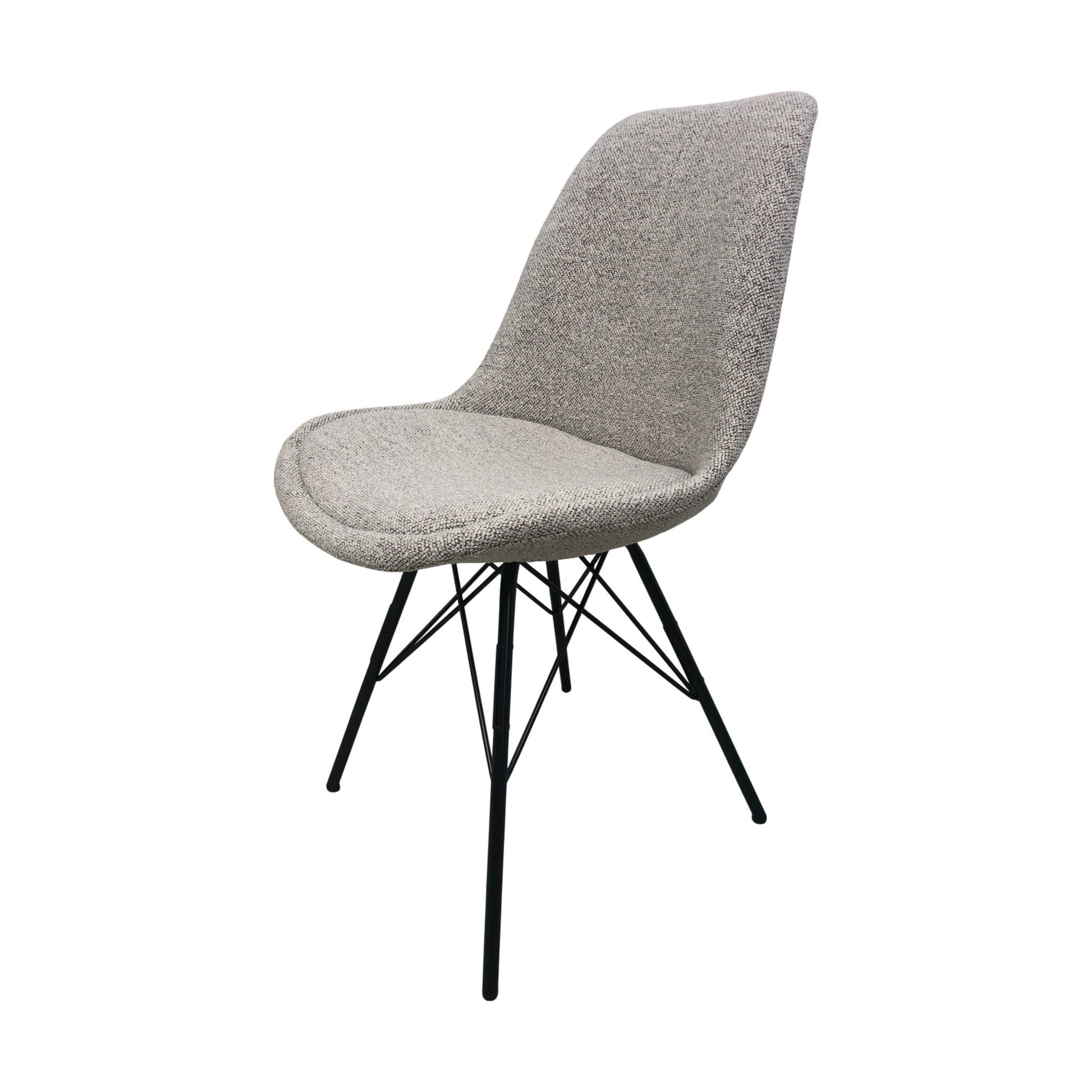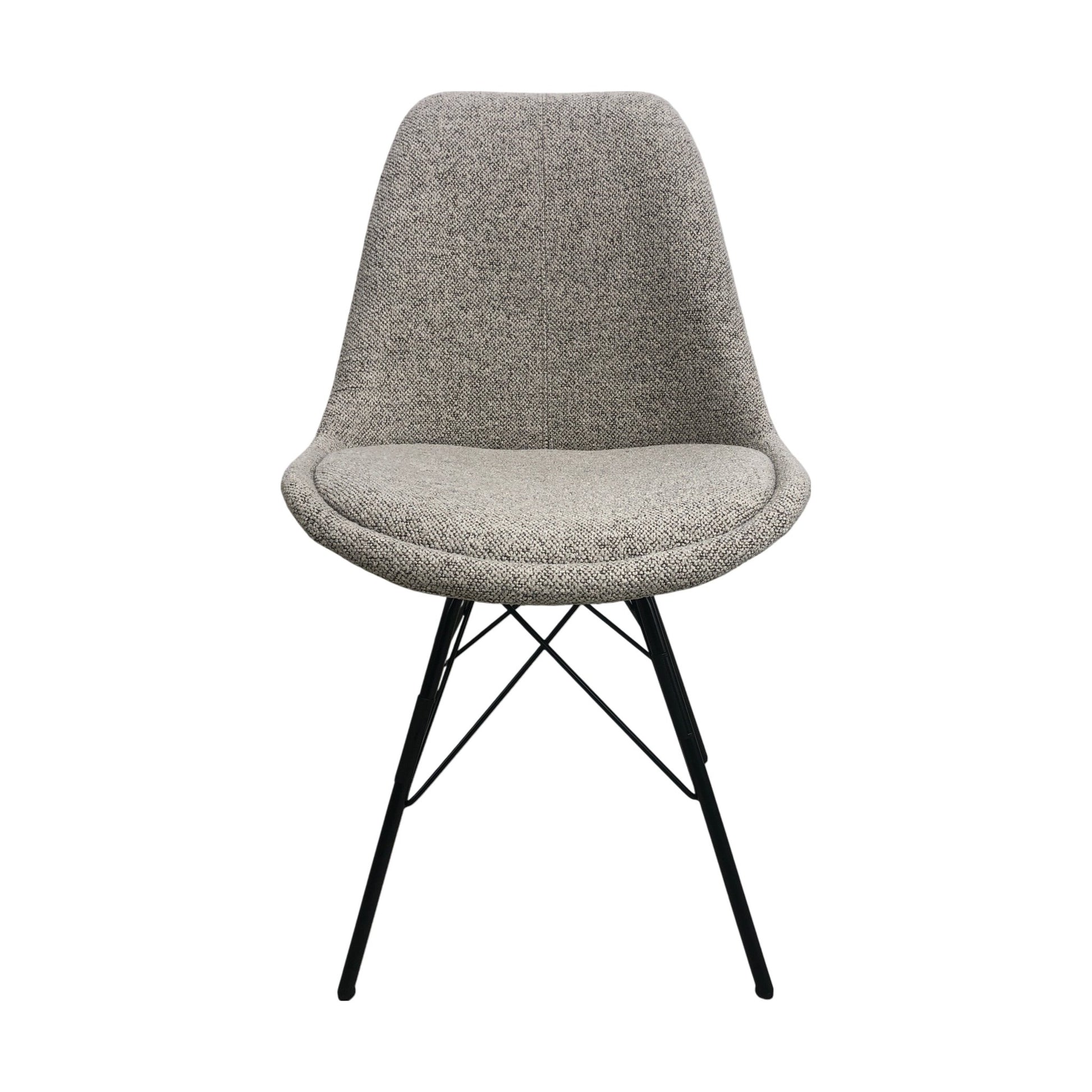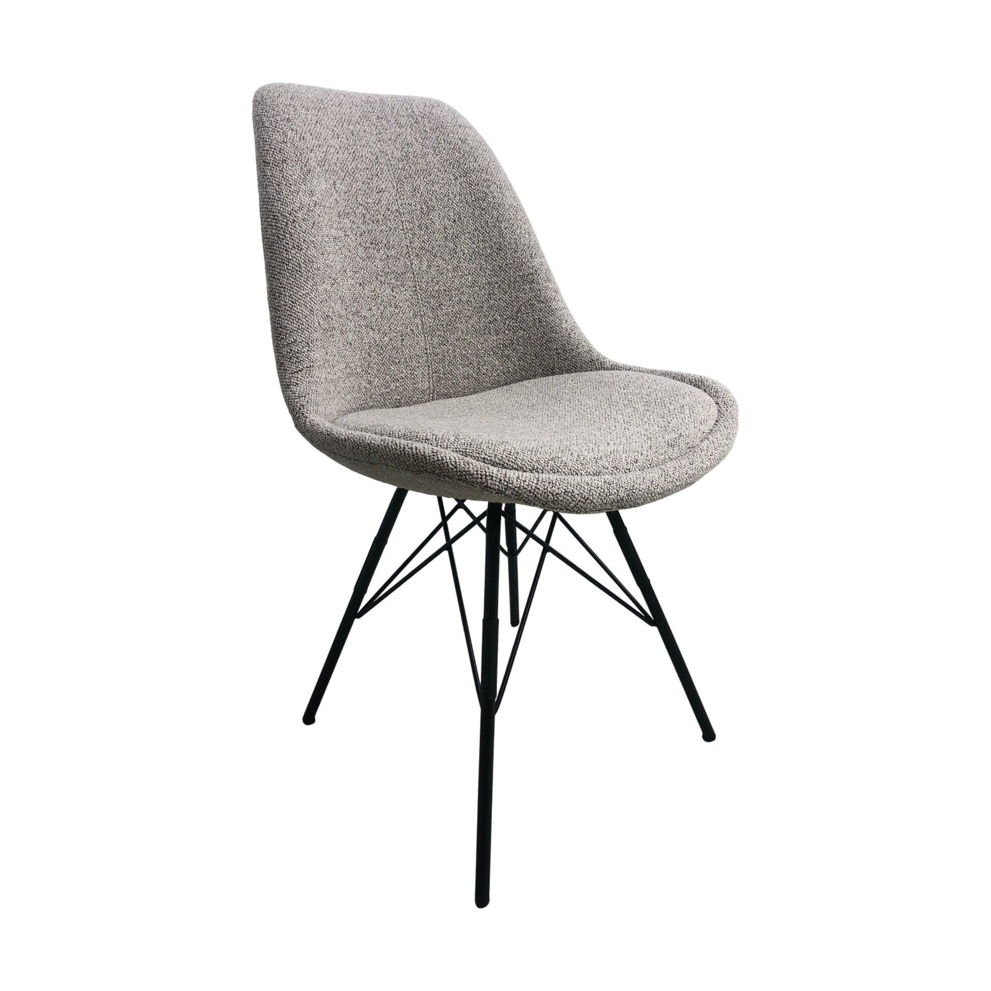 Eris er en nett og tidløs spisestol, perfekt for ethvert moderne hjem. Stolen har et vakkert, organisk formet setet i grått stoff som passer komfortabelt langs den naturlige krumningen i ryggen, og fremmer en god holdning under måltidene. Setet står på elegante, pulverlakkerte metallben som gir en robust, men lett design med et stilrent preg. Denne spisestolen passer inn i de fleste hjem og kjøkken og finnes i flere utførelser, noe som gjør den allsidig og lett å integrere i ulike interiørstiler.