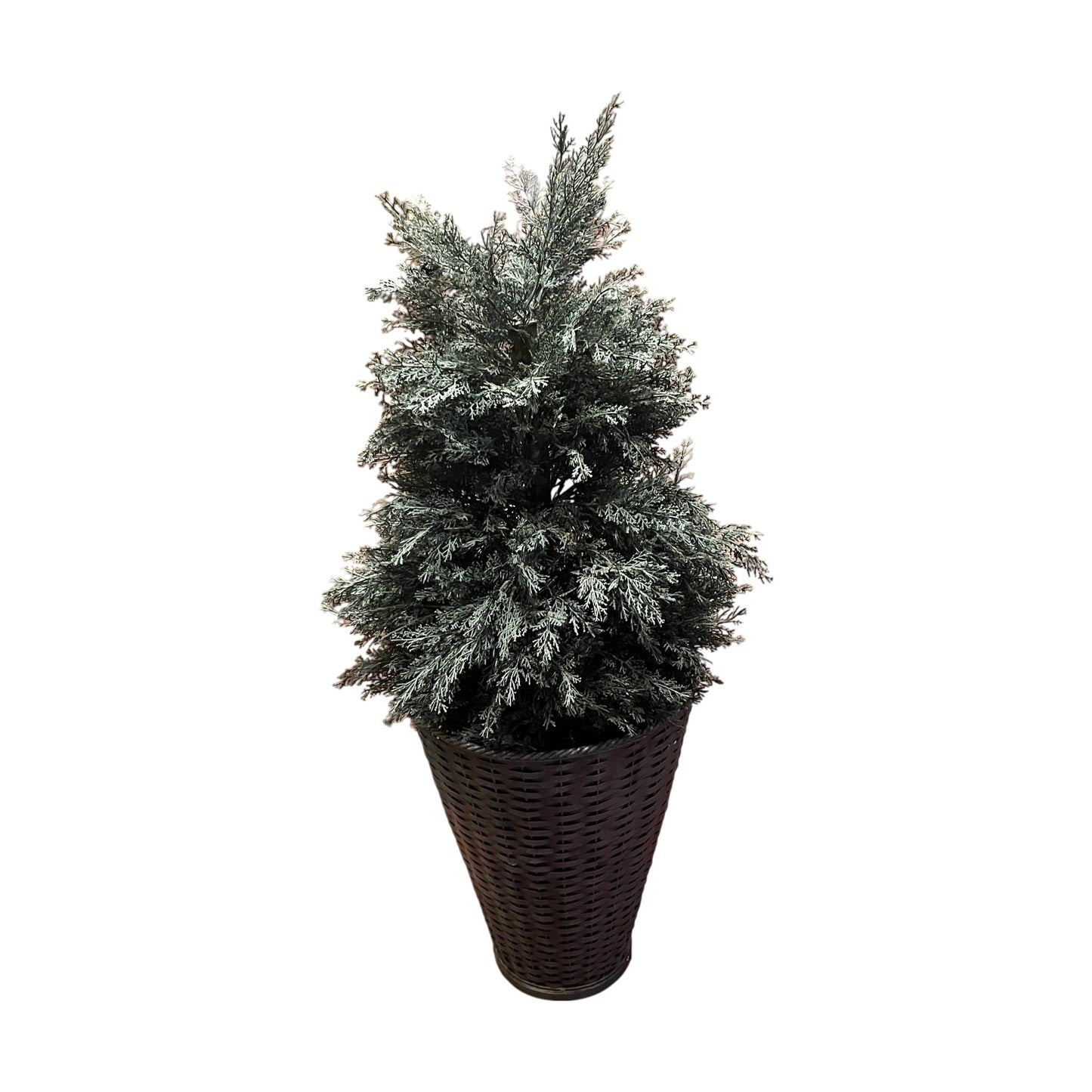 Falsk plante i en stilig dekorativ potte som tilfører liv og farge til ethvert rom. Den er perfekt for de som ønsker å skape en god atmosfære uten vedlikehold.