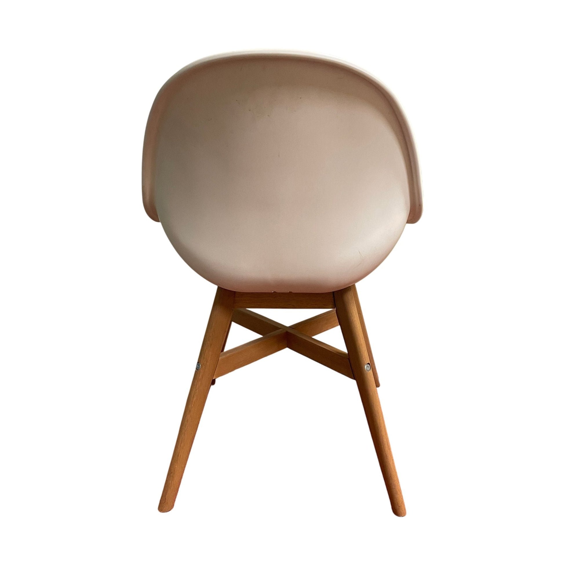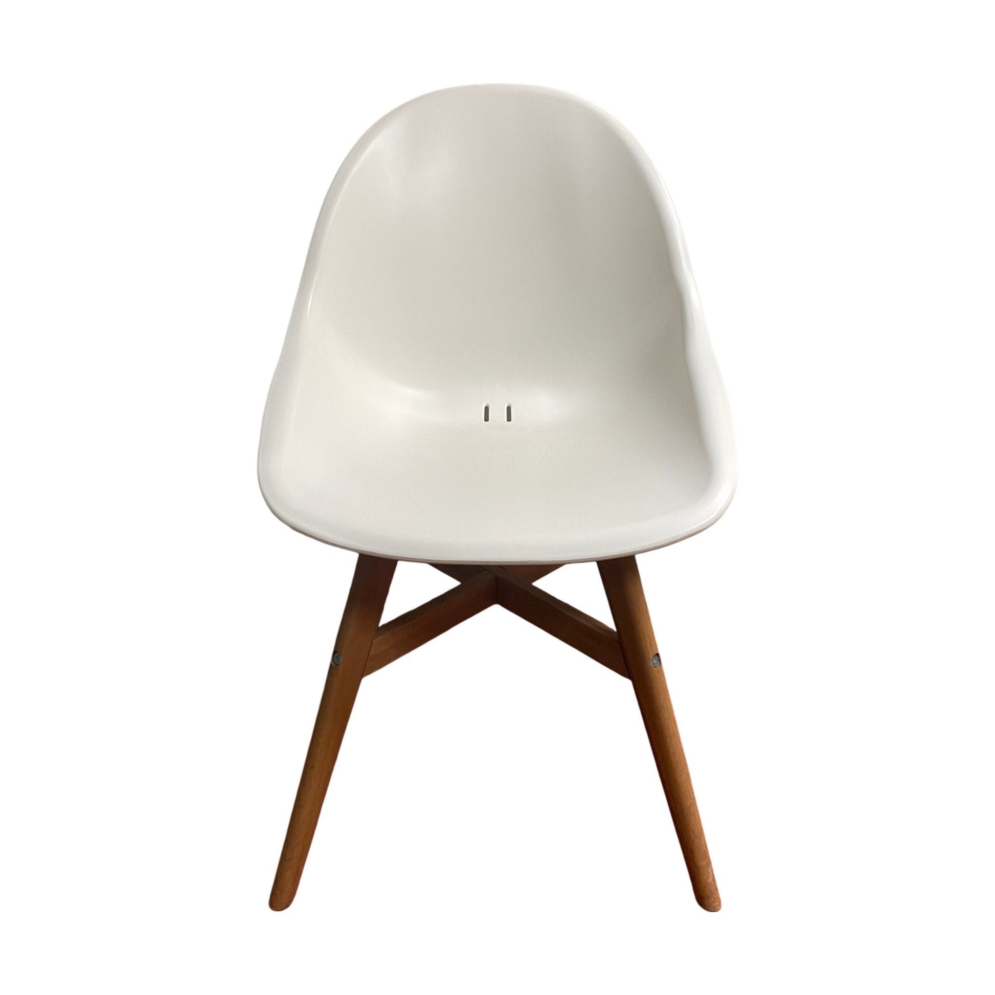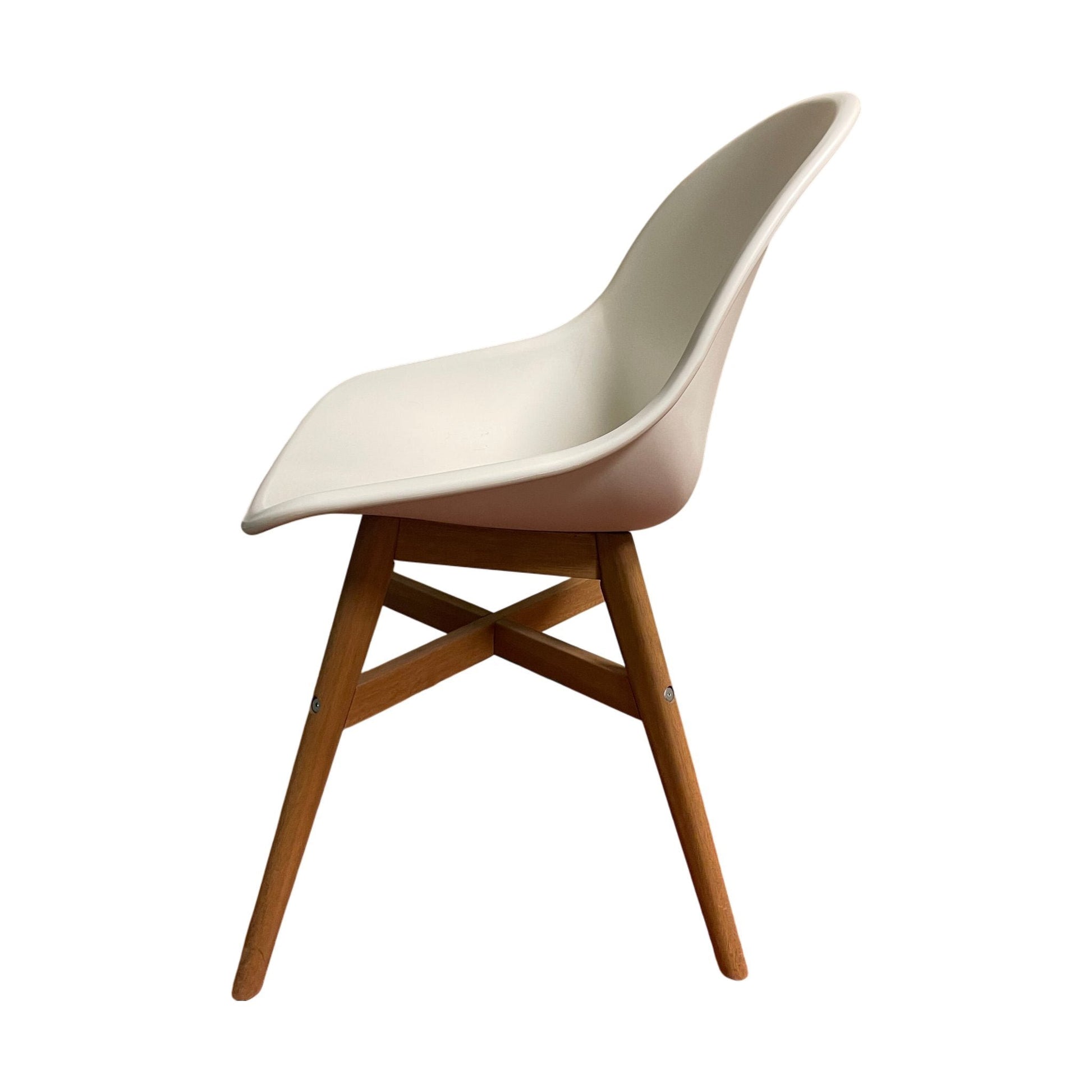 Spisestol med hvit plastskall og treben som gir en stabil og moderne struktur. Den enkle, stilrene designen gjør stolen egnet for både kontor og hjemmemiljøer.Stolen sin glatte overflate og lette vekt gjør den enkel å flytte rundt, og den passer perfekt inn i møterom eller spisestuer. Trebenene gir et varmt og naturlig preg, samtidig som de bidrar til stolens solide konstruksjon.