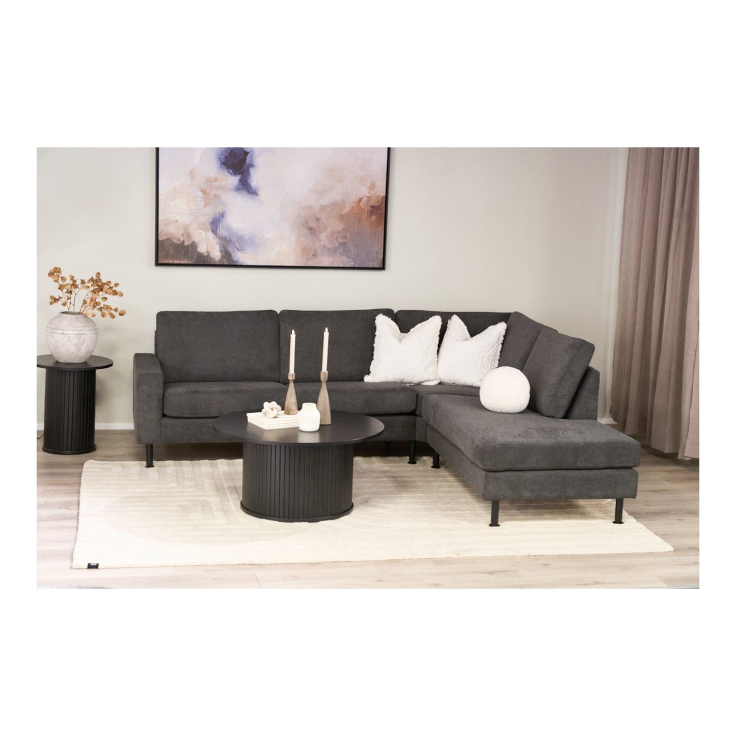 Fiola sofabord er et moderne og trendy bord som vil gi ethvert rom et elegant preg. Bordet kommer i tre utførelser - naturlig eik, røkt eik og svart eik - som hver har sin egen unike stil og utseende. Den tykke sokkelen med lammeller gir bordet en robust og solid følelse, mens den runde bordplaten gir en elegant avslutning. Med Fiola sofabord kan du enkelt tilføre en moderne touch til interiøret ditt.