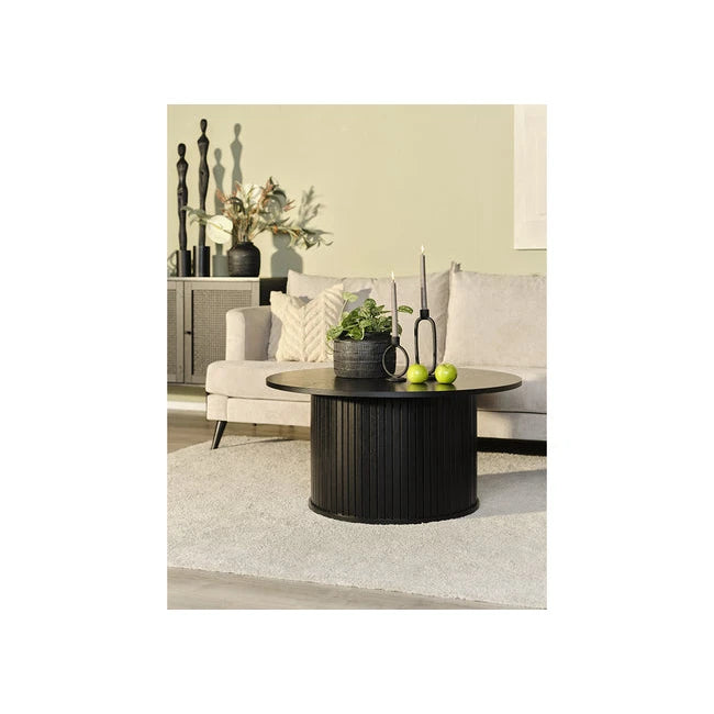 Fiola stuebord fra A-Møbler er et stilrent og moderne møbel som tilfører et elegant preg til ethvert rom. Med sin runde bordplate og en robust sokkel i lammeller i svart eik, kombinerer dette bordet skjønnhet med funksjonalitet. Dens høyde på 45 cm gjør det perfekt som et sofabord eller sidebord.