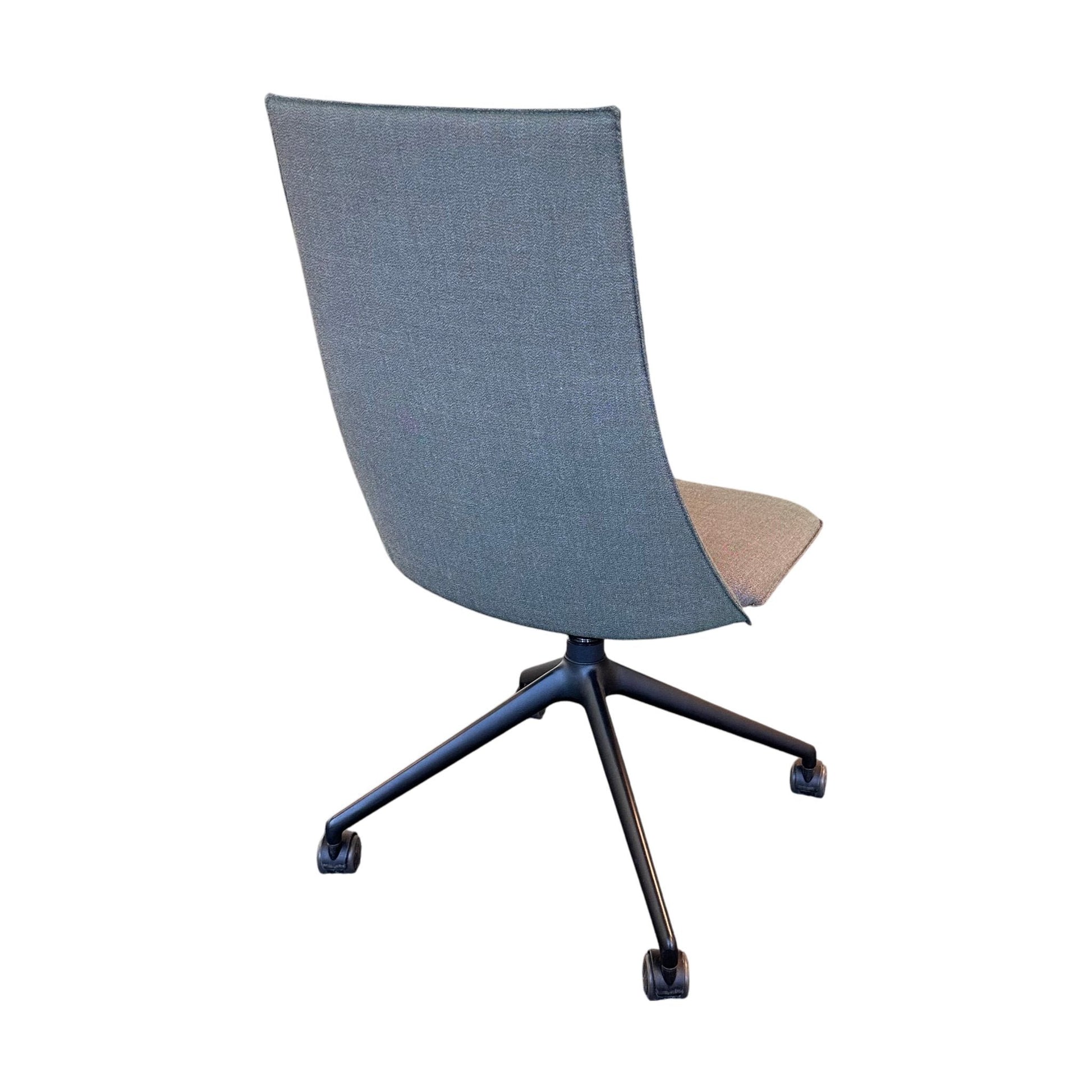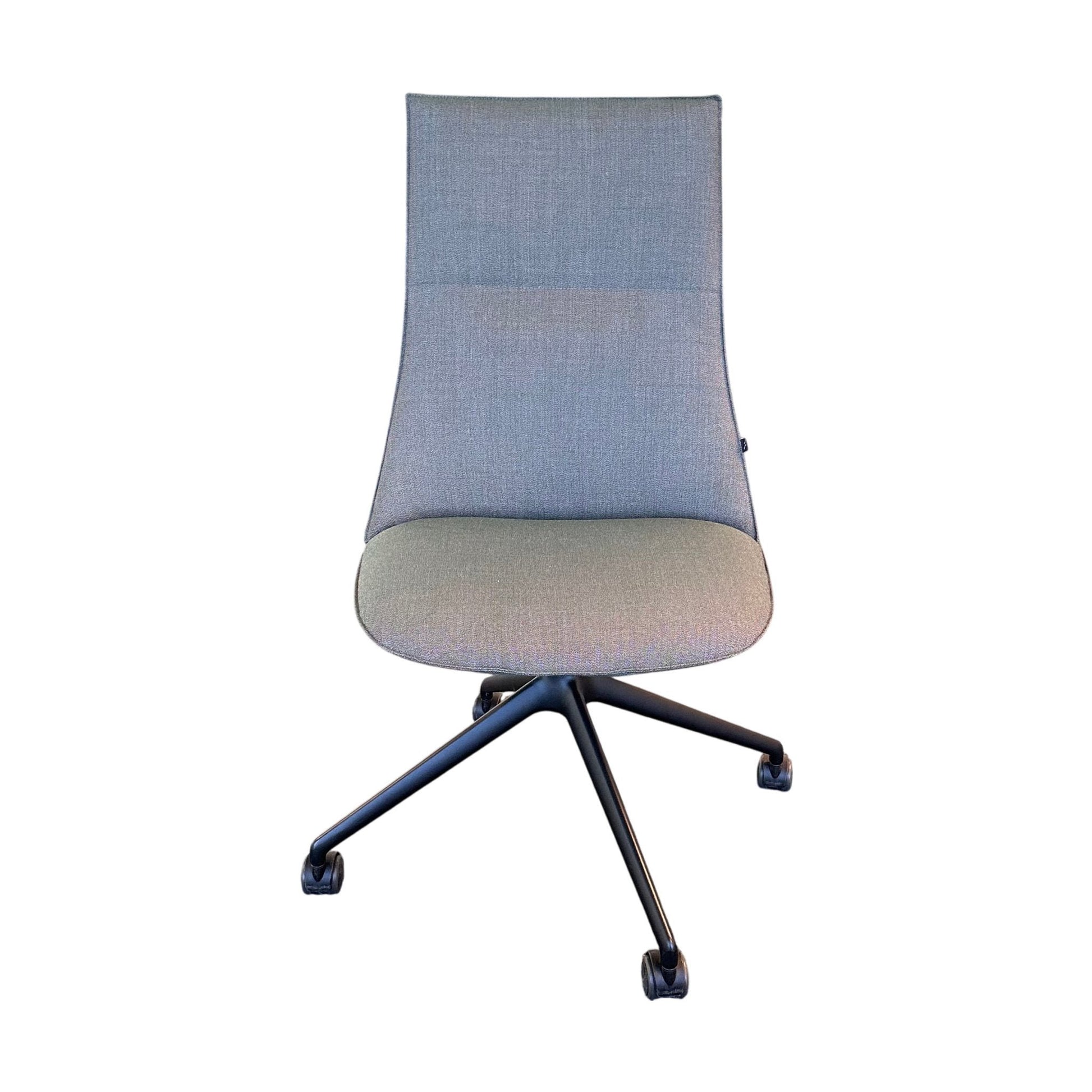 Fjell 5ER møteromsstol fra Fora Form har et tidløst og stilrent design. Stolen er trukket i slitesterk mørk grønn tekstil, noe som gir et harmonisk uttrykk i ethvert møterom eller kontor. Uten armlener gir stolen god bevegelsesfrihet, og den kan lett stables for oppbevaring når det ikke er behov for ekstra sitteplasser.