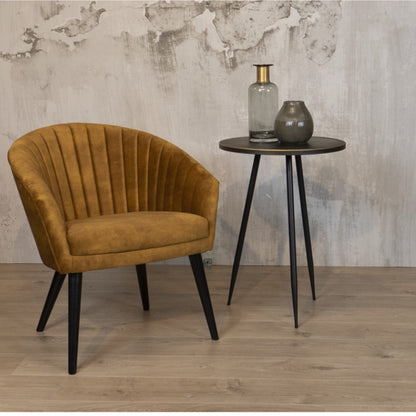 En tøff og moderne lenestol med god sittekomfort. Stolen har et moderne design og passer utmerket som en supplering-stol i de aller fleste hjem. Flora har et flott søm mønster i ryggen, som gjør stolen meget dekorativ. Stolen er trukket i et ensfarget mykt velour stoff og har sorte tre ben. Kan bestilles med sort metall understell, og i et stort utvalg stoff og farger.