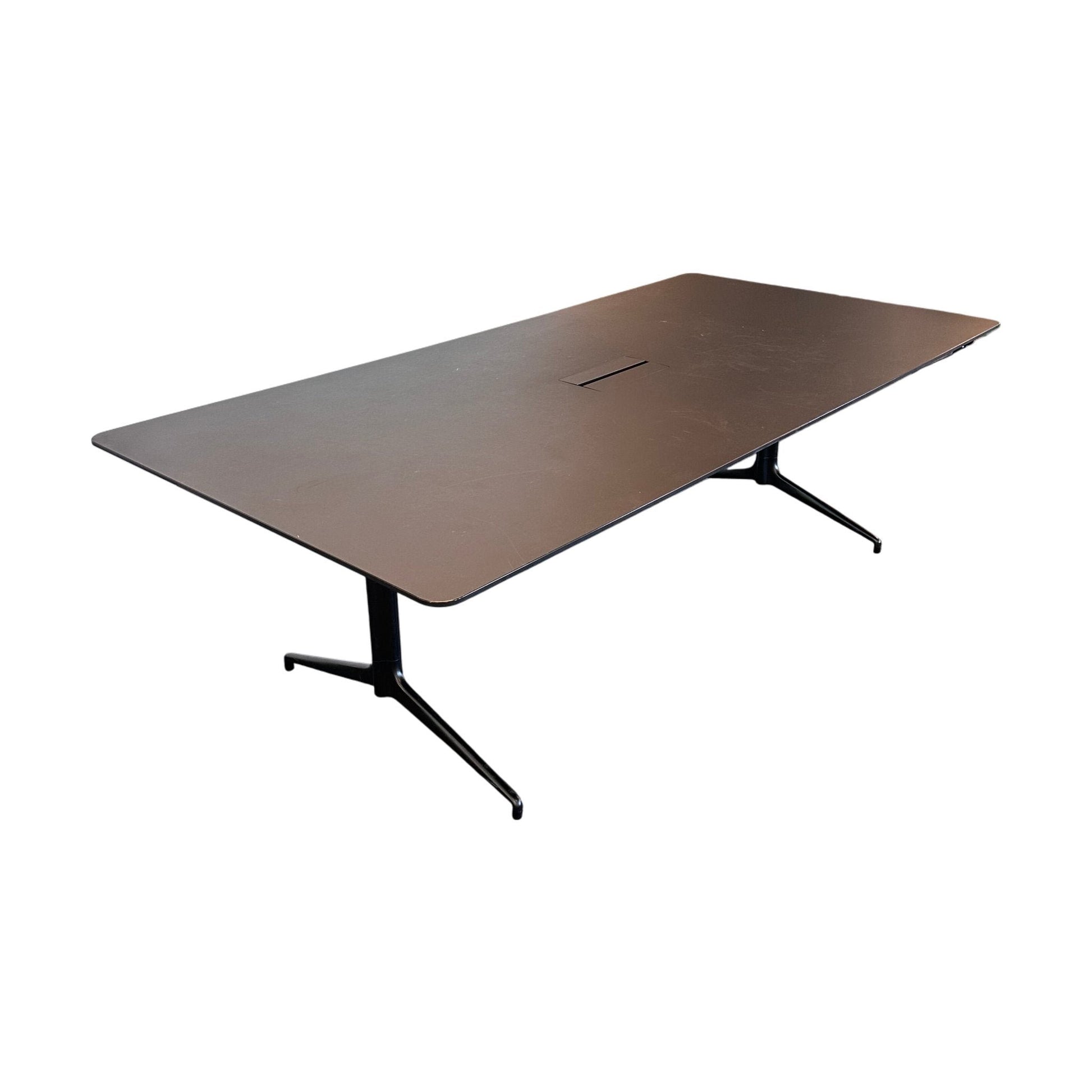 Solid møtebord med en slitesterk sort MDF bordplate og et robust understell. Bordet gir et stilrent og profesjonelt preg, og egner seg godt i møterom, kontorer og andre arbeidsmiljøer.