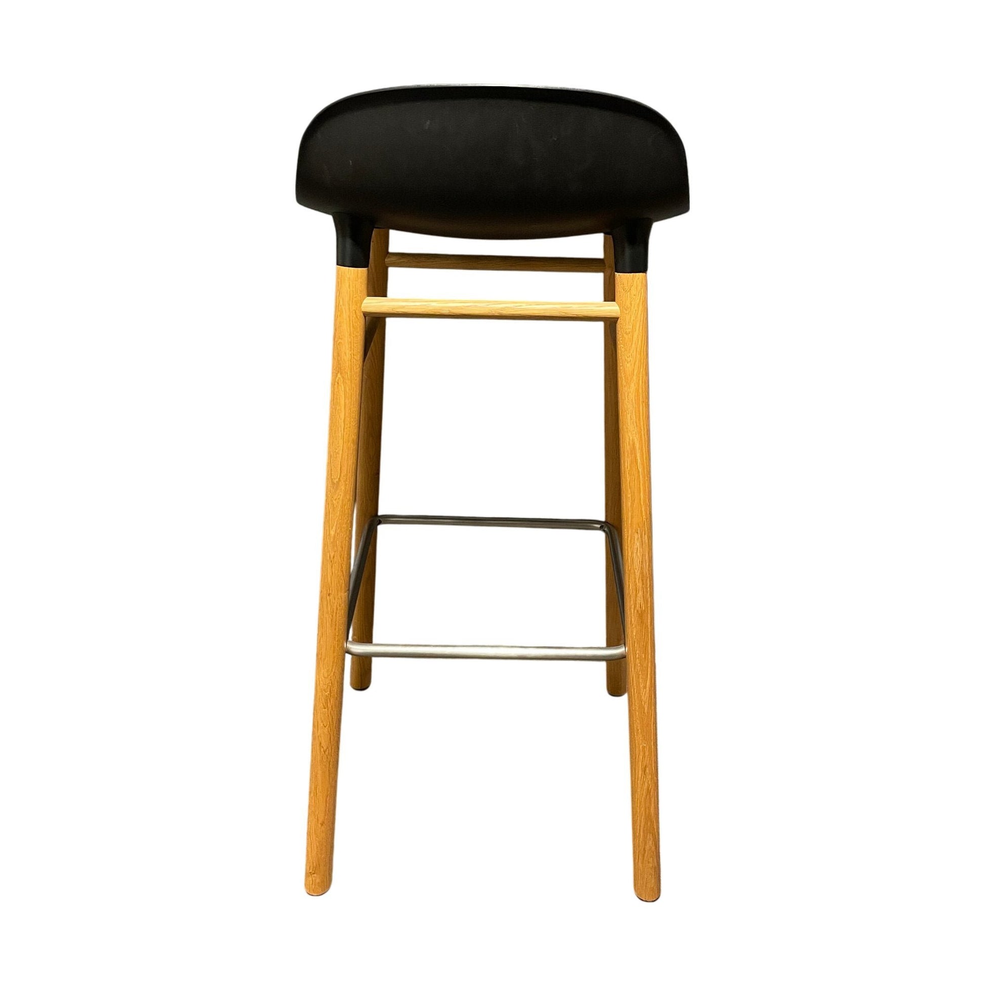 Form barstol fra Normann Copenhagen med en utsøkt kombinasjon av et stilrent, svart sete i plast og solide ben i eik. Barstolen passer perfekt til både hjemme- og kontormiljøer, og gir et moderne uttrykk med sitt enkle og funksjonelle design. Med en sittehøyde på 75 cm er den ideell til barbord og høyere møbelgrupper.