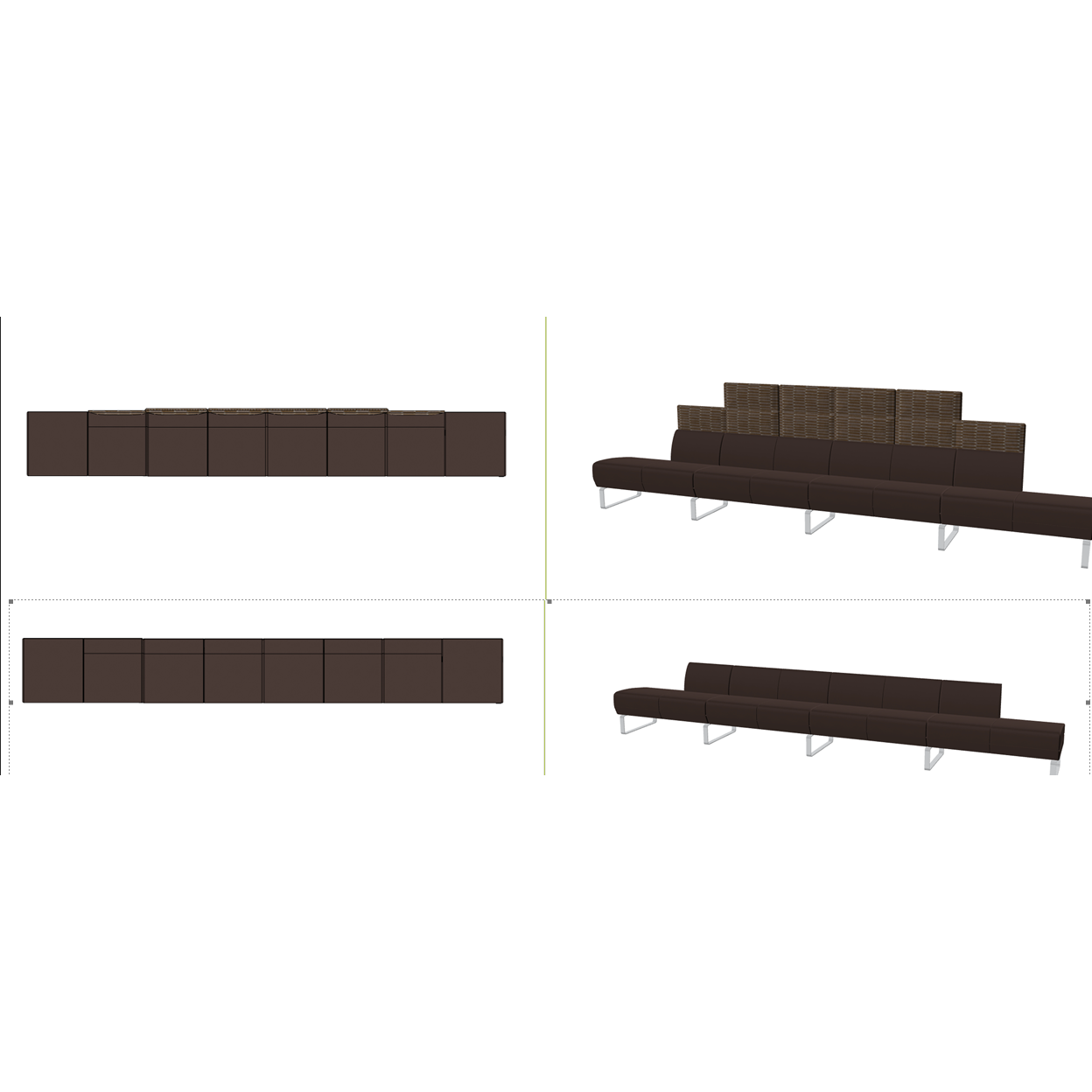 Frende petite sofa med skillevegg fra Ekornes, ideell for kontoret. Sofaen har en stilren brun skinnfinish og er utformet for å gi komfort og avskjerming i moderne arbeidsmiljøer. De mønstrete skilleveggene tilfører et unikt estetisk preg, og skaper en koselig atmosfære i loungeområder.