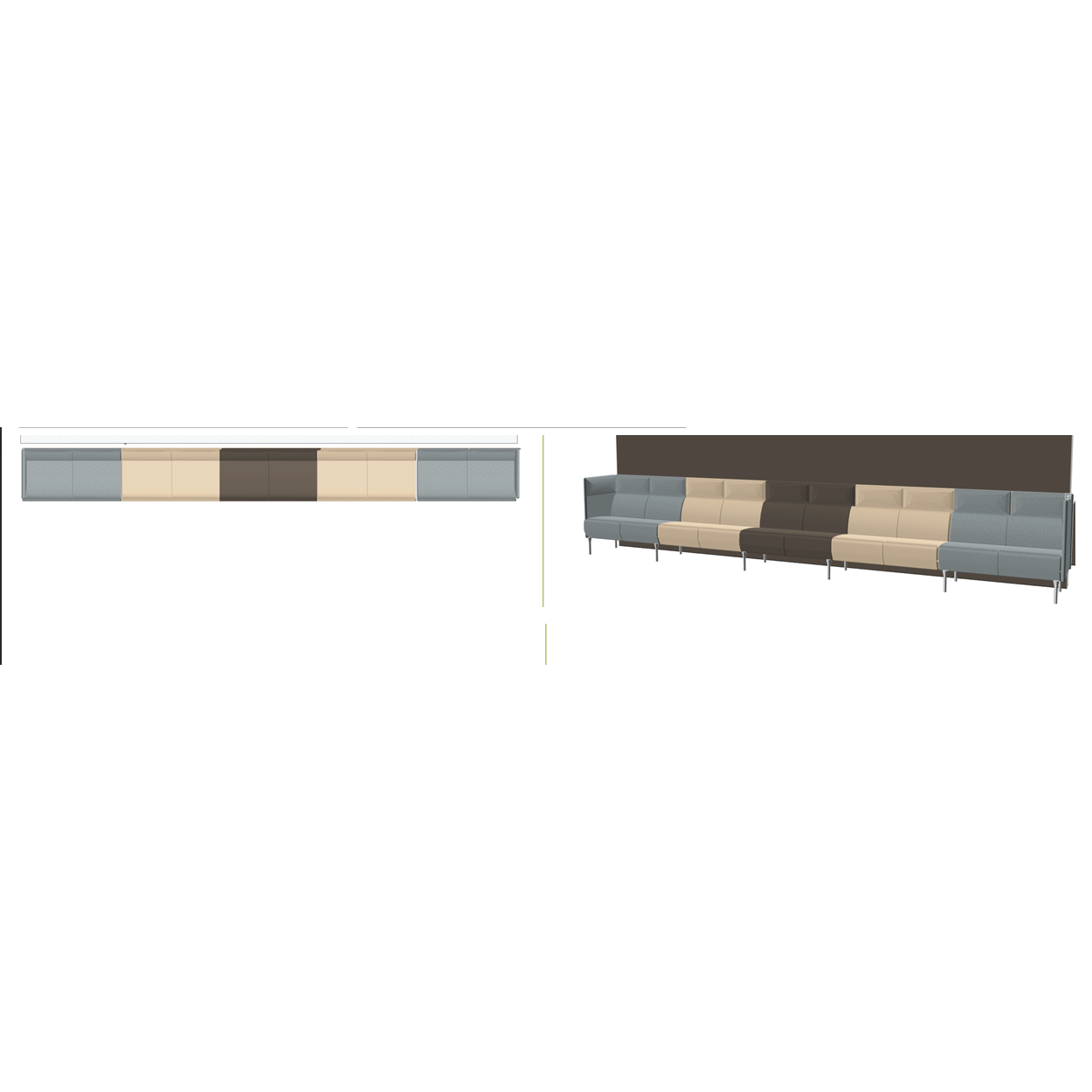 Elegant og flerfarget Frende sofa fra Ekornes, ideell for kontorlandskap. Sofaen har en kombinasjon av gråblå, brun og kremfarge som gir et moderne og innbydende uttrykk. Den lange sofaen har solide rygger som sikrer komfort og støtte, perfekt for møter eller avkopling.