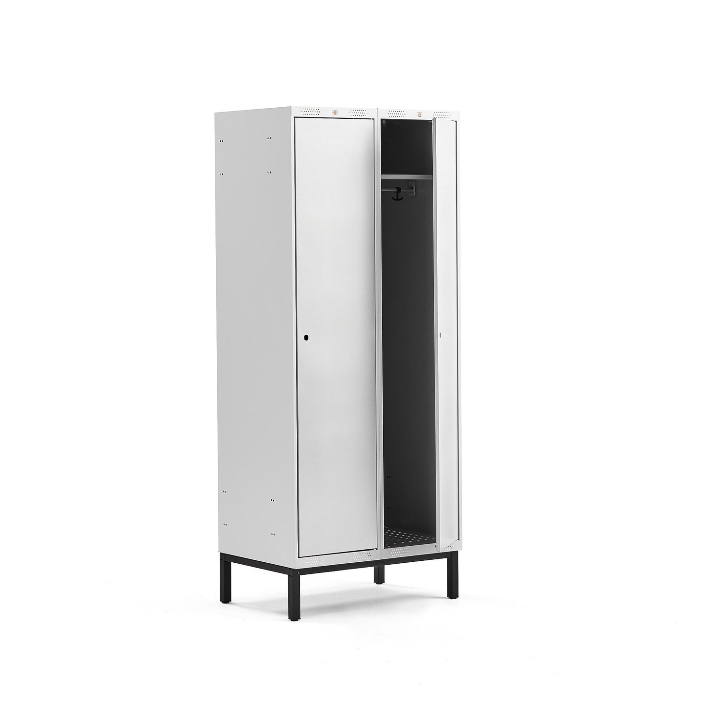 Garderobeskap CLASSIC, benstativ, 2 seksjoner, H1940 B800 D550 mm, grå