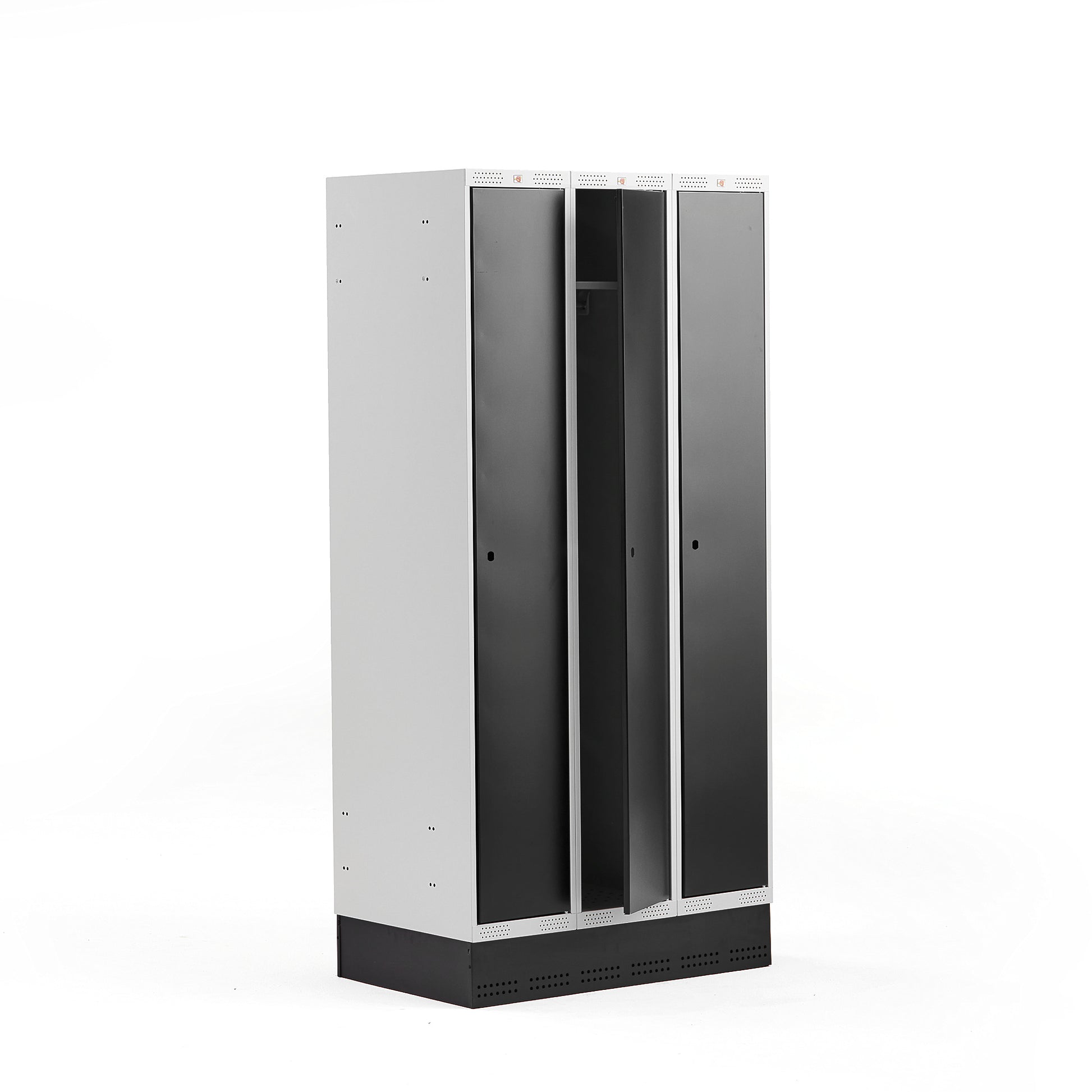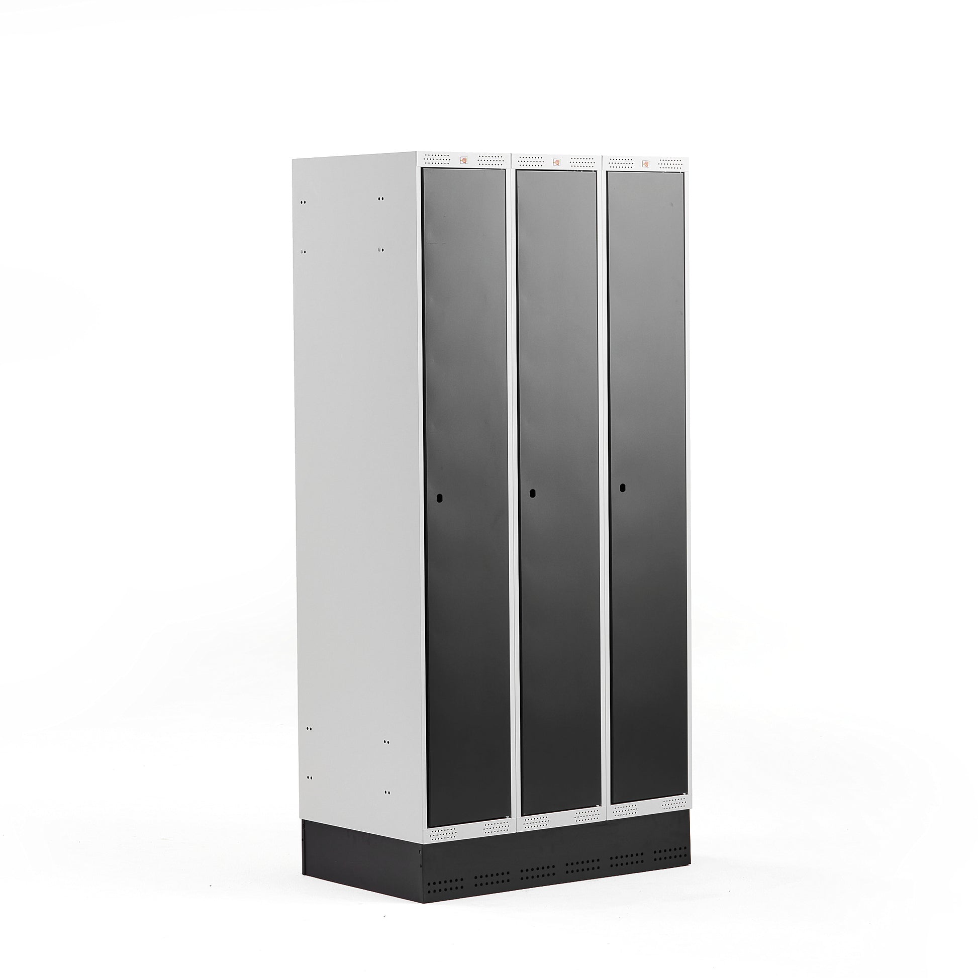 Garderobeskap CLASSIC, sokkel, 3 seksjoner, H1890 B900 D550 mm, svart