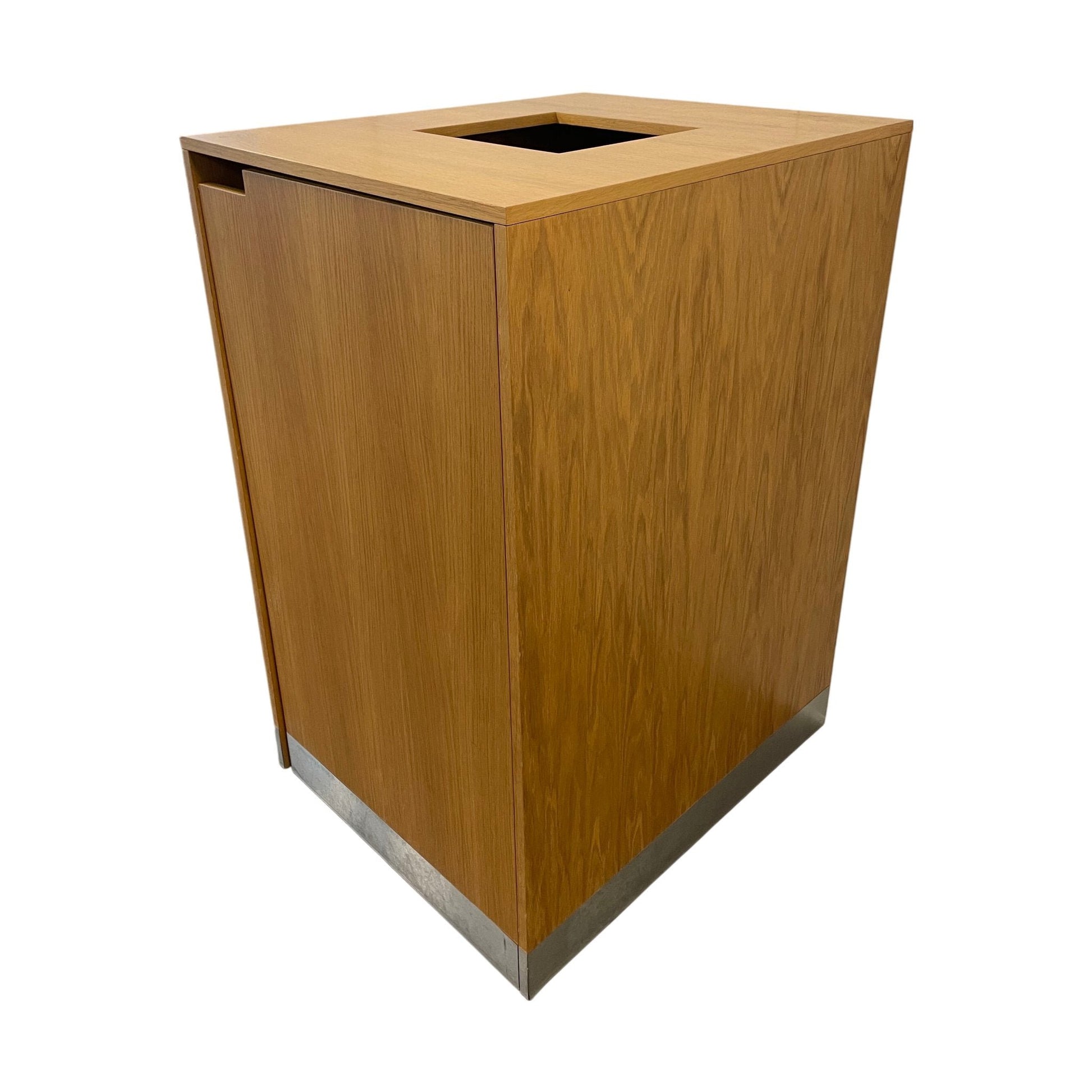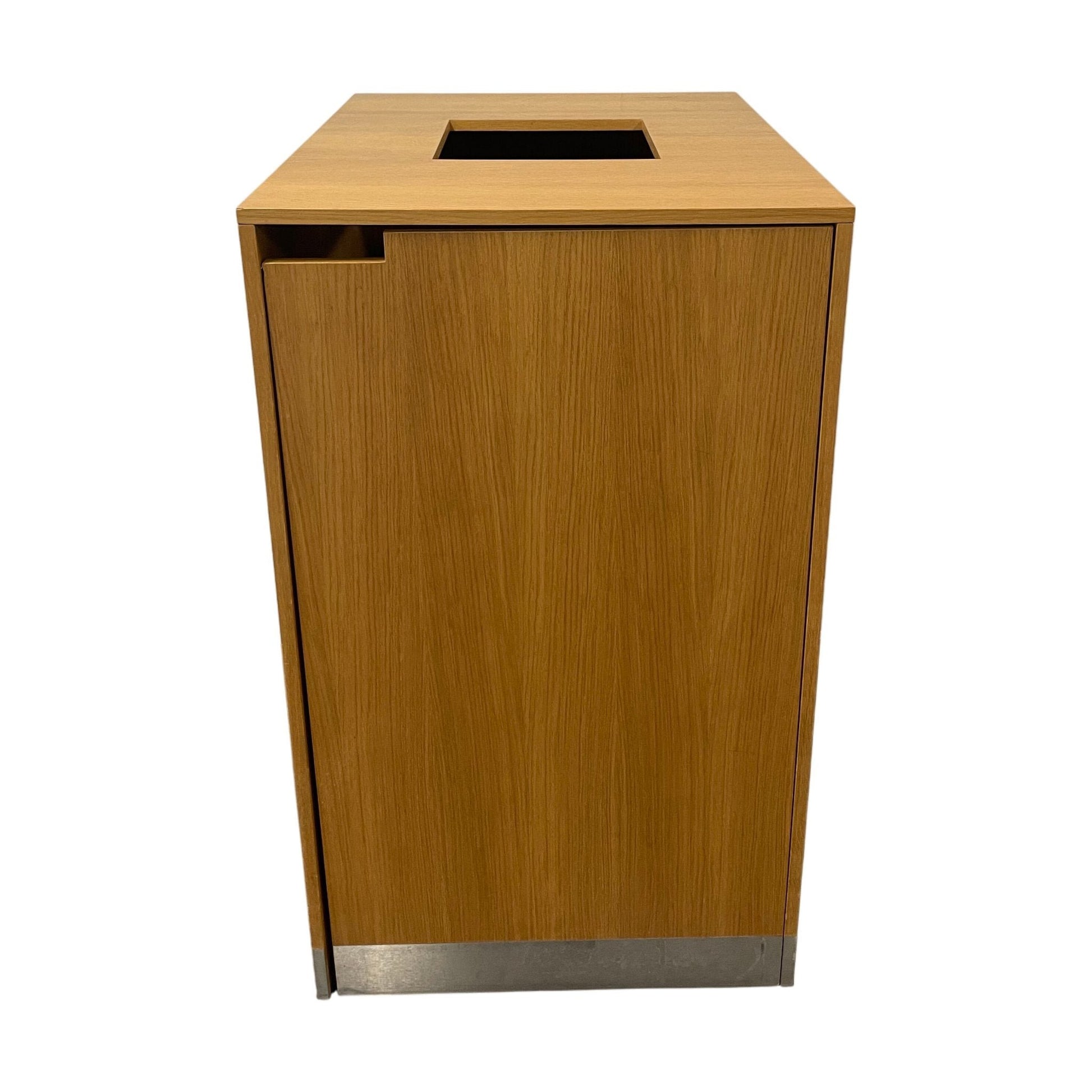 Skapet er i utmerket tilstand med minimale tegn på bruk. Det gir en funksjonell og stilren løsning for avfallshåndtering i moderne kontorer.
