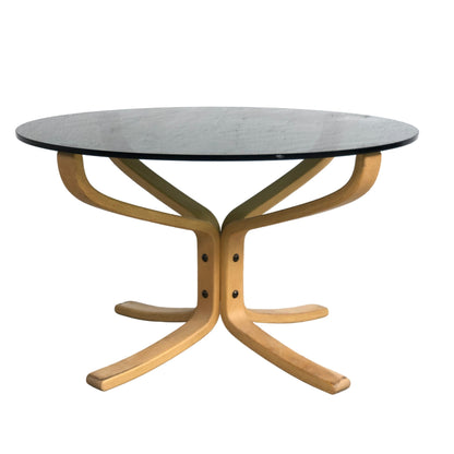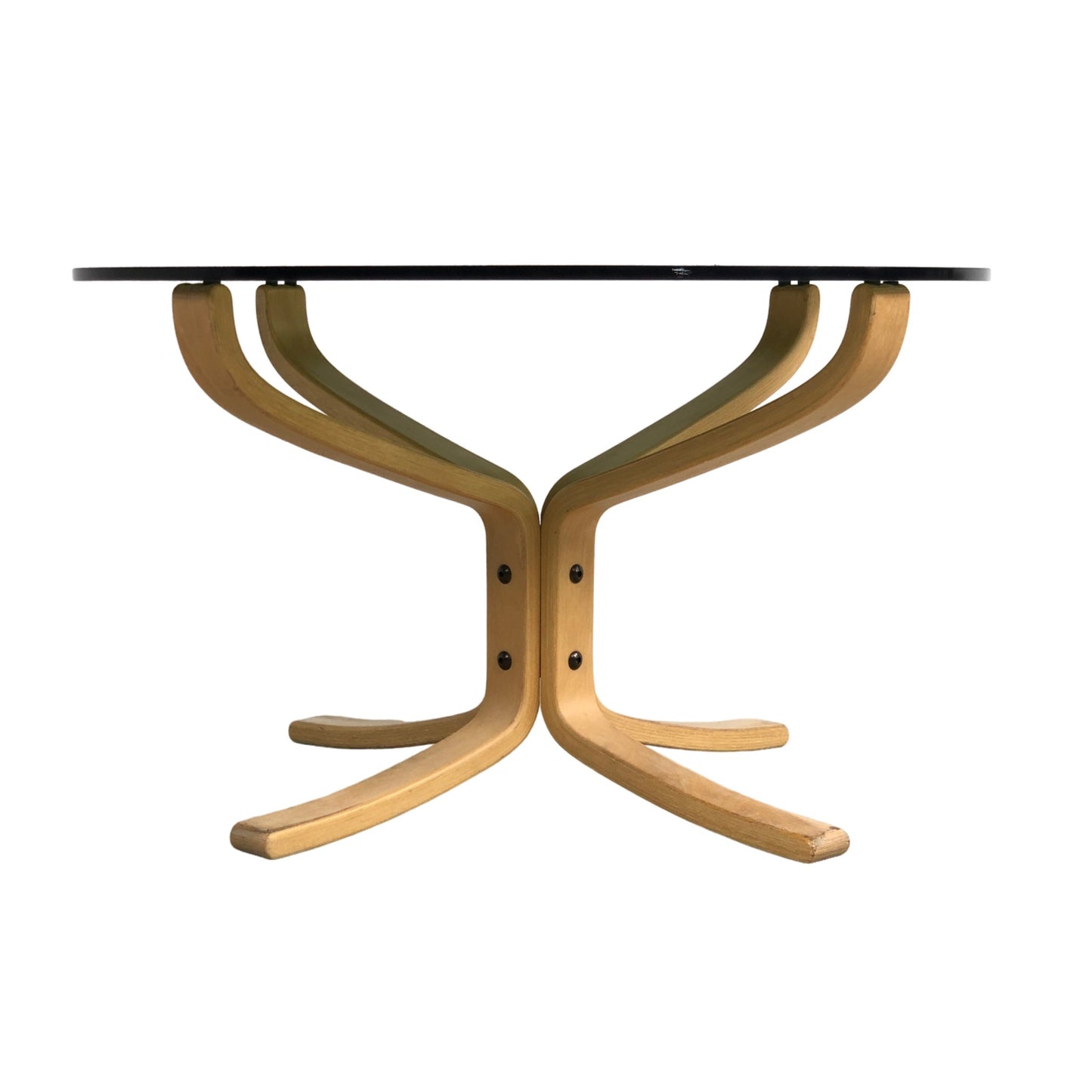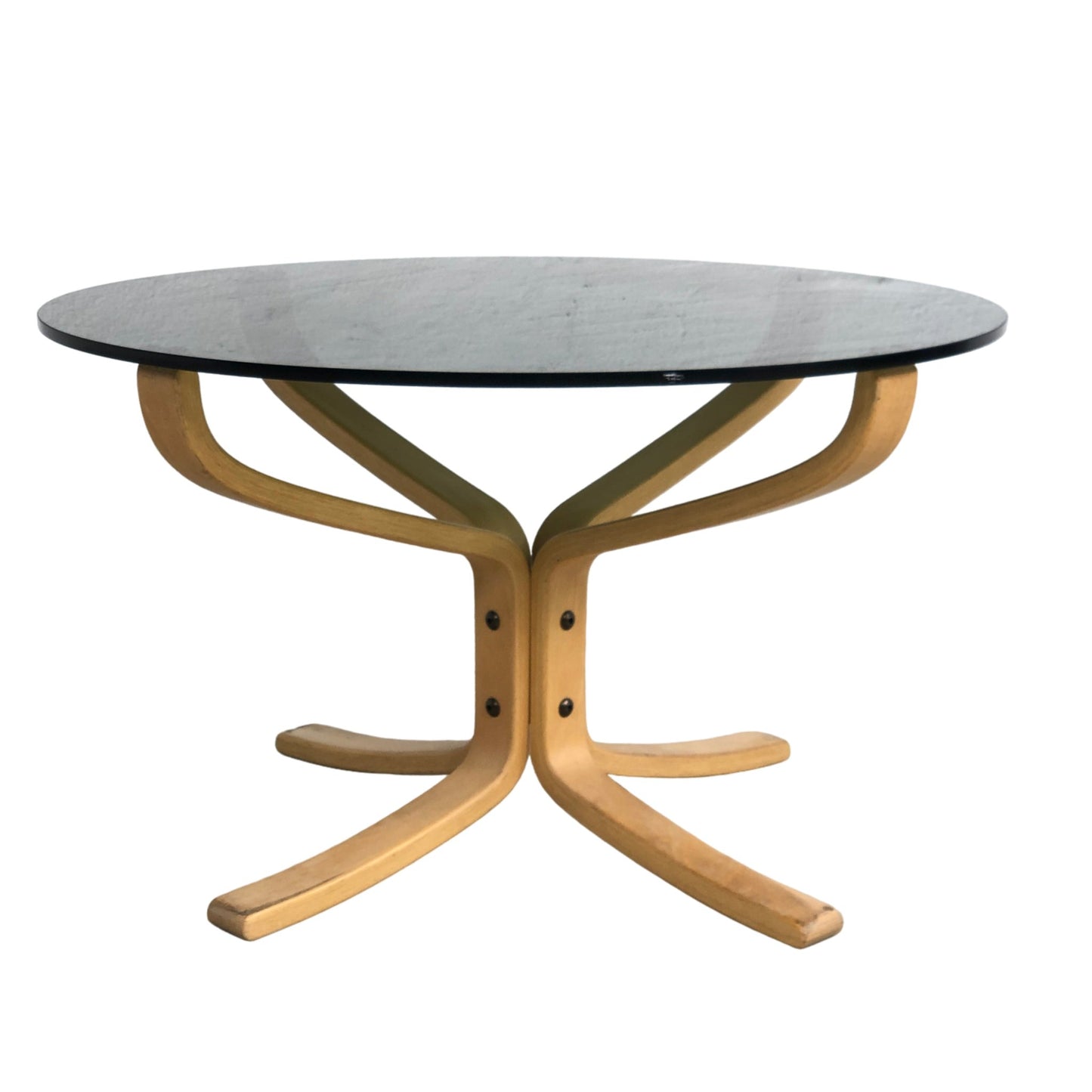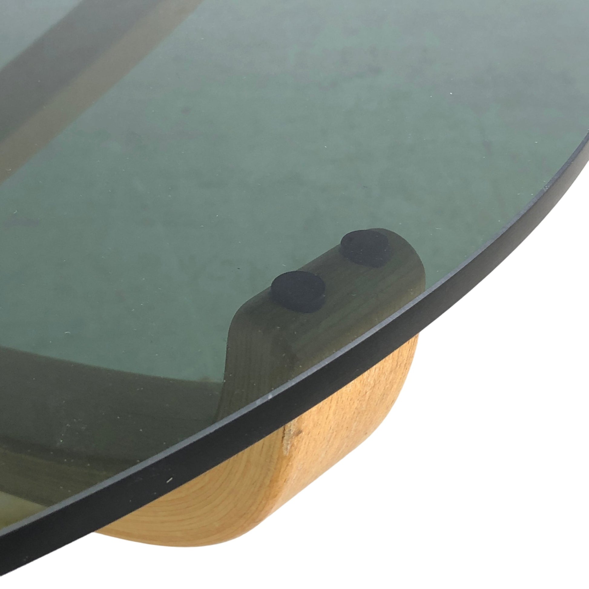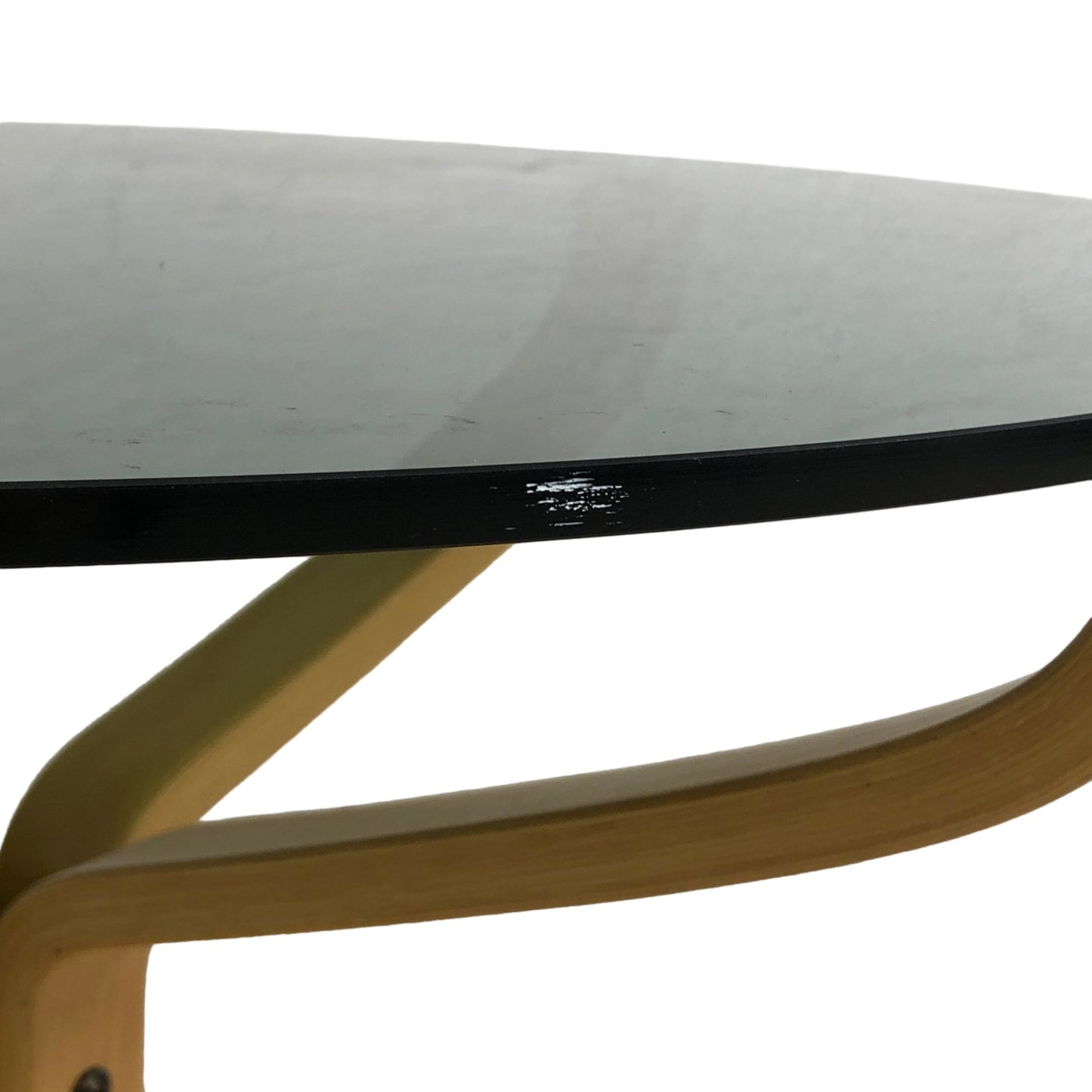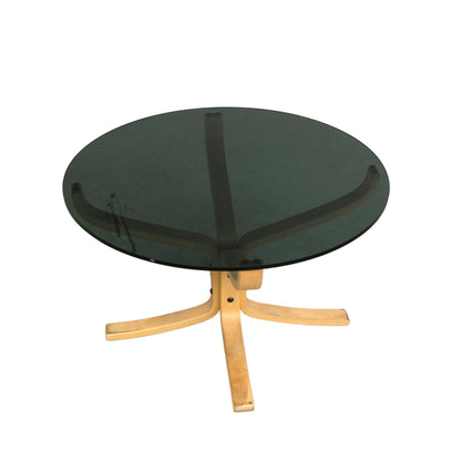 Sjarmerende glassbord som tilfører et moderne preg til stuen eller kontoret. Bordet har treben som gir stabilitet og et unikt design, perfekt for å samle venner eller som et stilfullt arbeidsområde.