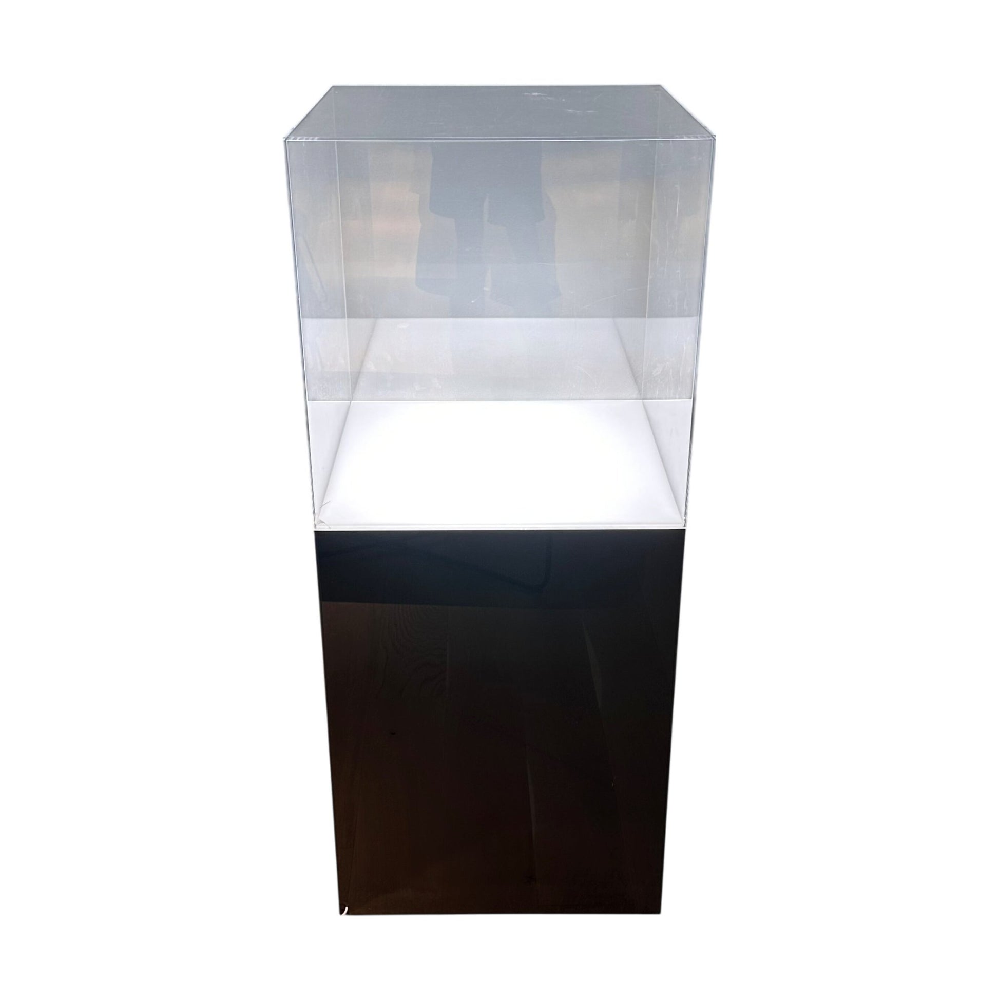 Glassmonter er en stilren oppbevaringsløsning med en moderne svart base og en transparent plastikkoverdel. Denne konstruksjonen gjør det enkelt å vise frem dine favorittgjenstander samtidig som de er beskyttet. Den følger med en ledning for enkel montering, noe som gjør den praktisk for bruk i ulike rom.