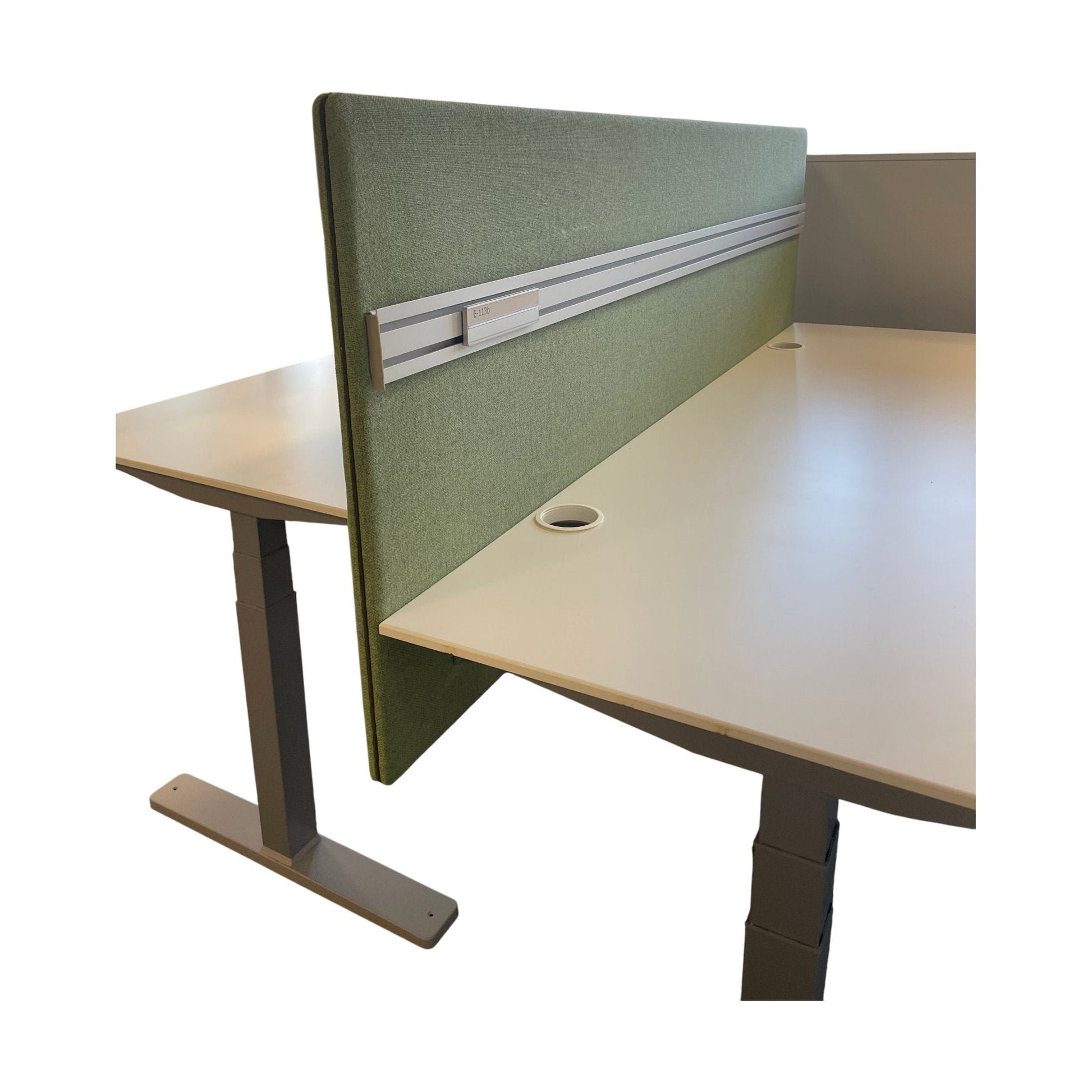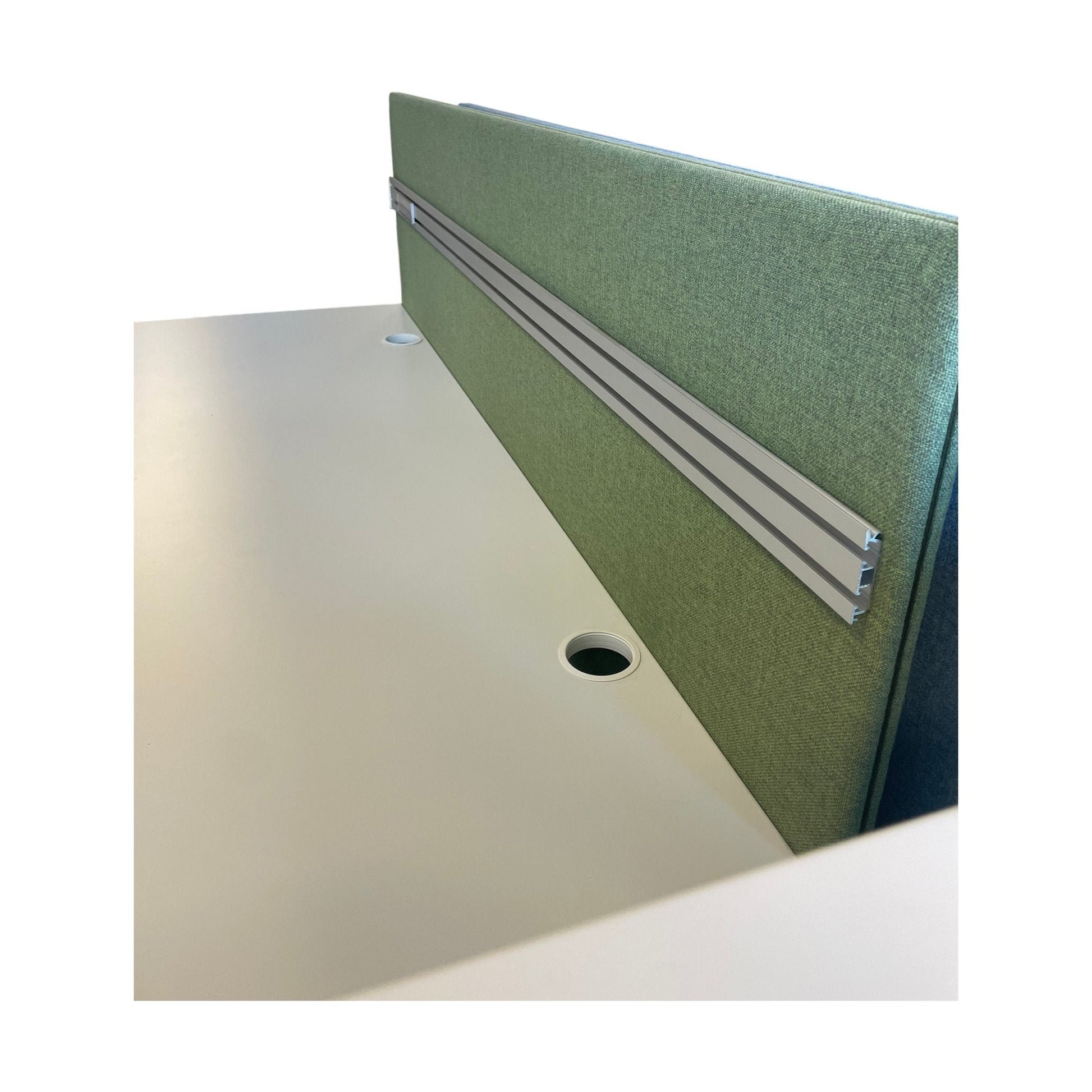 Praktisk bordskjerm fra Glimakra som skaper separate arbeidsområder og reduserer støy i kontormiljøet. Den er trukket i en fresh grønn tekstil som tilfører en moderne og stilren følelse til arbeidsplassen. Med en høyde på 70 cm og bredde på 180 cm, er den ideell for større skrivebord og arbeidsplasser som ønsker å skape et mer fokusert miljø.
