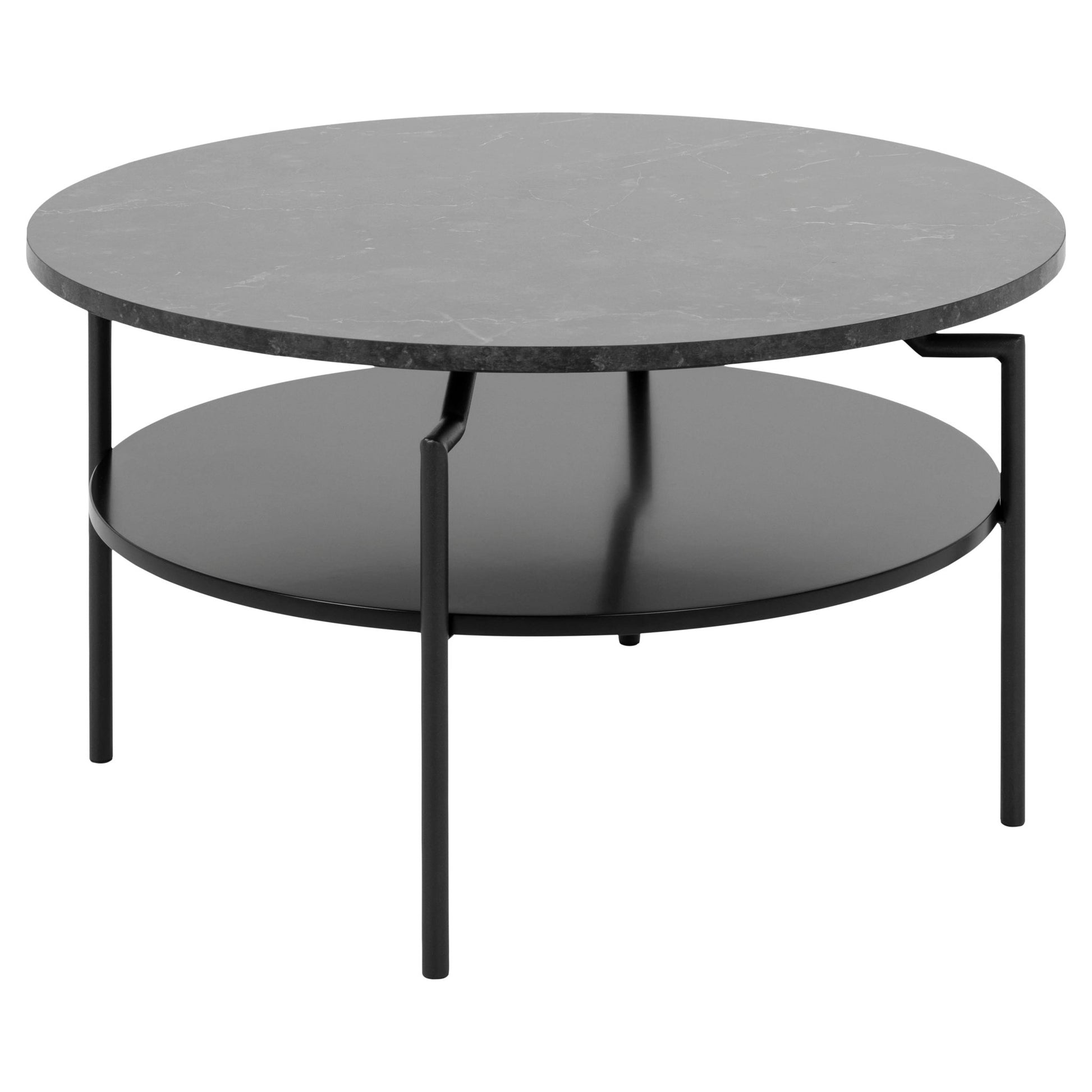 Goldington sofabord fra A-Møbler med en solid melamin plate laget med imitert marmor print. Bordet har et rundt design som gjør det enkelt å plassere i ethvert rom, og det passer utmerket godt til moderne hjørnesofa-løsninger.