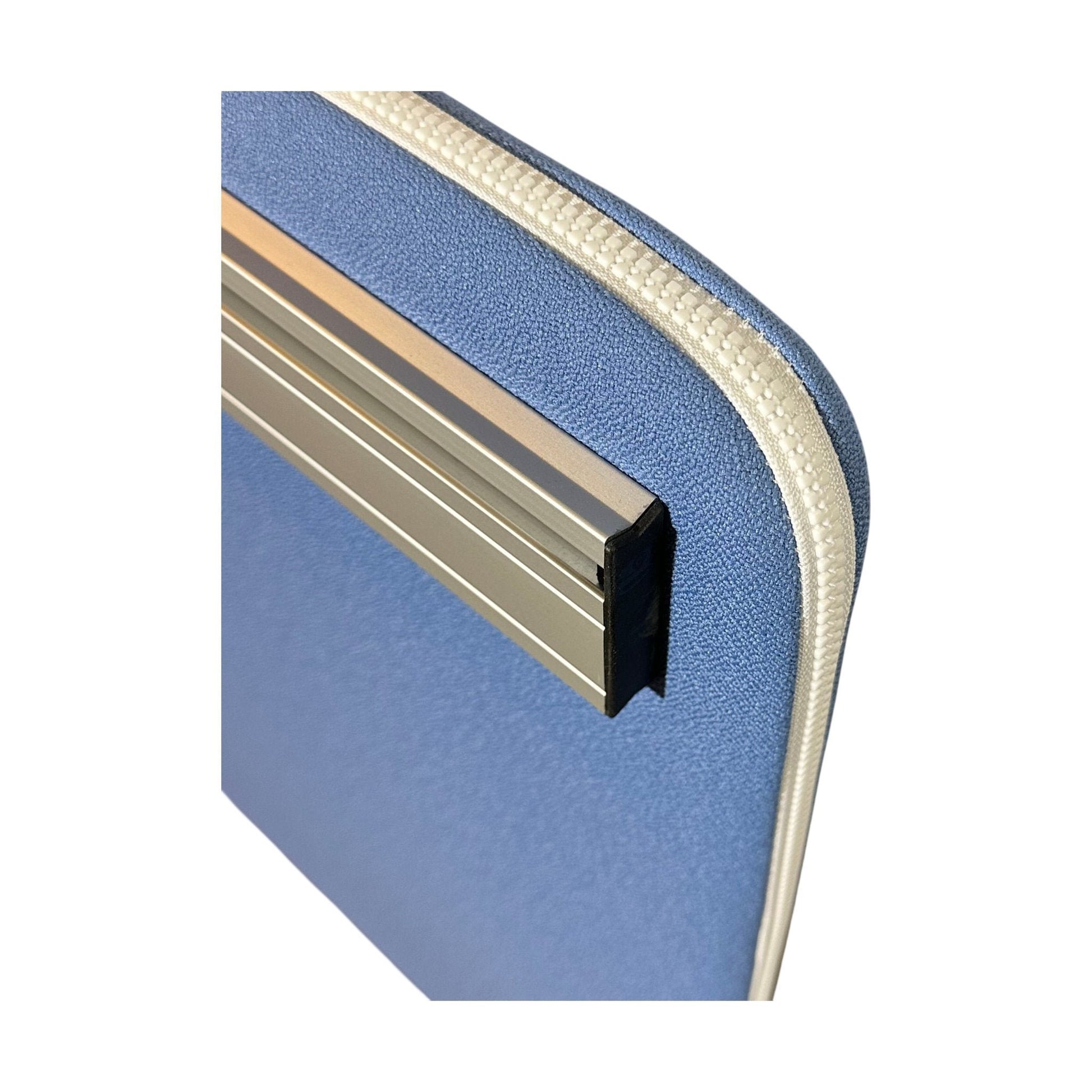 Elegant bordvegg skillevegg fra Götessons, designet for å skape en inspirerende og avskjermet arbeidsplass. Den iøynefallende blå fargen gir et friskt uttrykk, mens glidelåsen i hvit tilfører et moderne preg. Denne skilleveggen passer perfekt til kontorlandskap og hjemmeenheter som ønsker både stil og funksjonalitet.