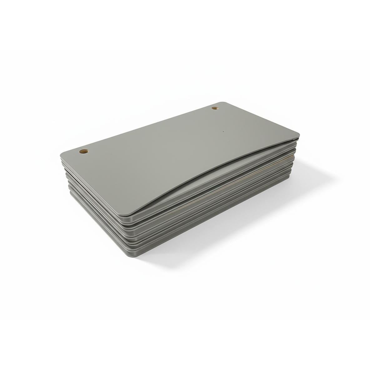 Grå linoleum bordplate og praktisk magebue, ideelt for kontorbruk. Bordplaten gir rikelig plass til arbeidsutstyr og har et moderne, minimalistisk utseende som bidrar til et profesjonelt arbeidsmiljø. Kommer med to kabelhull for kabelgjennomføring
