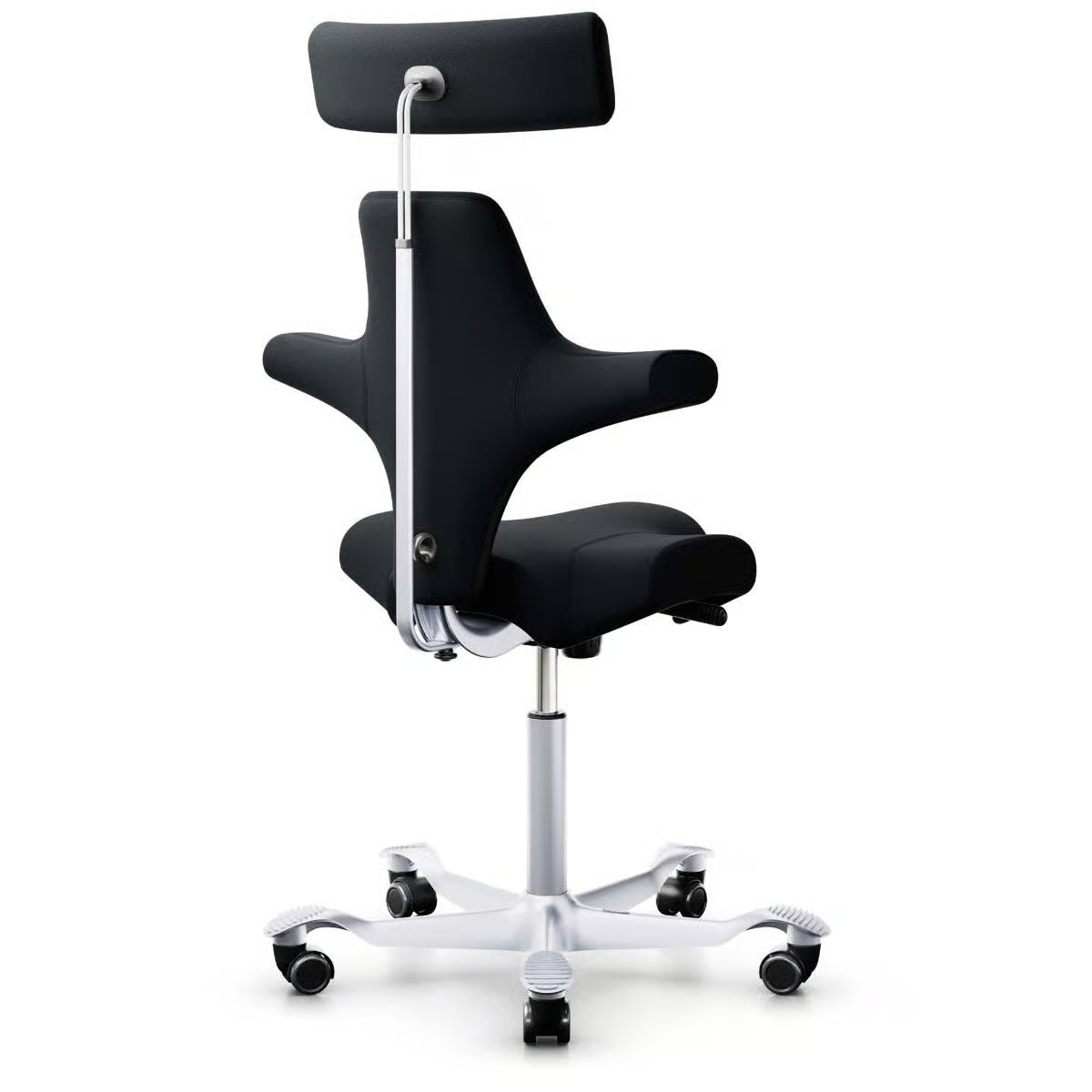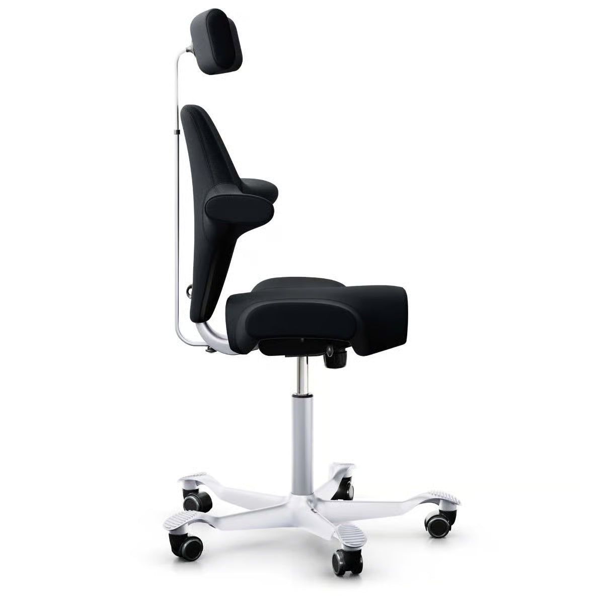 Ergonomisk kontorstol fra HÅG med et karakteristisk design som fremmer aktiv sitting. Denne modellen, Capisco 8107, har et unikt sadelformet sete som gir flere sittestillinger og er utstyrt med en moderne, minimalistisk stil. Det nye trekket i Select 60999 Black tilfører et stilrent preg til stolen.