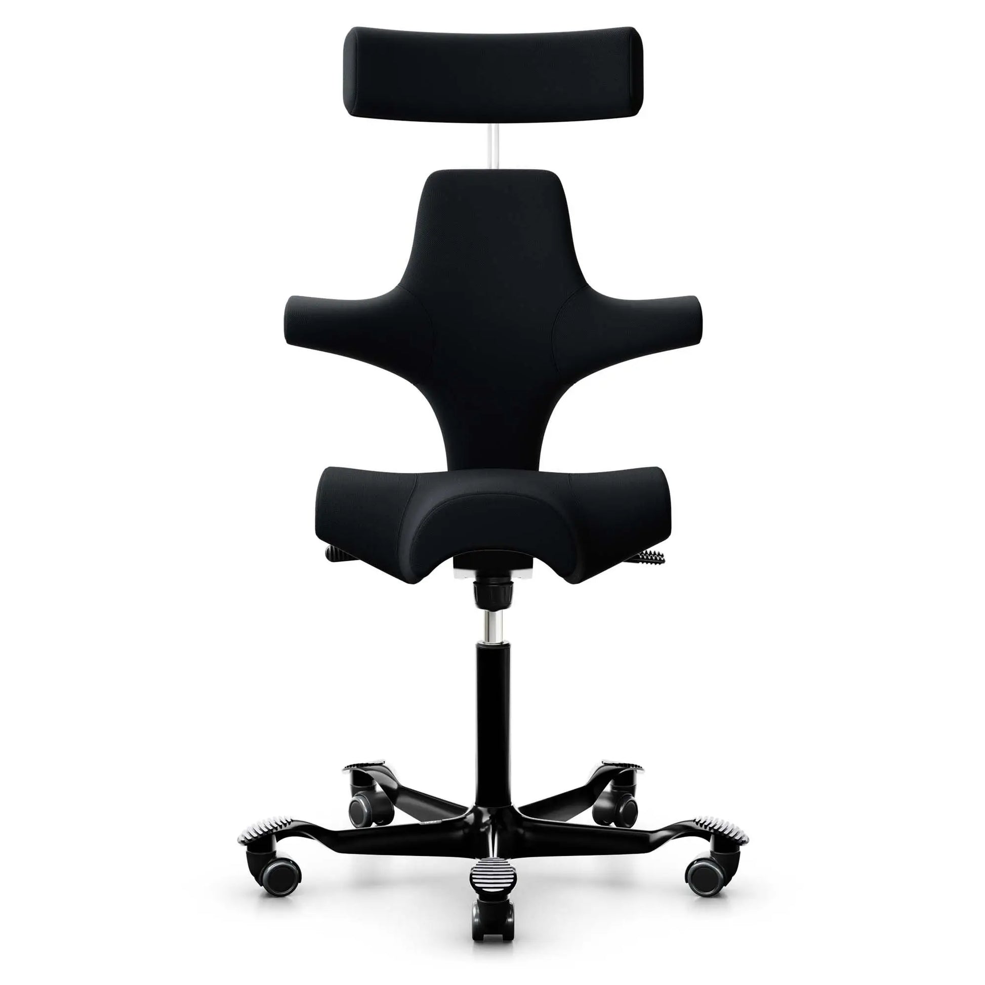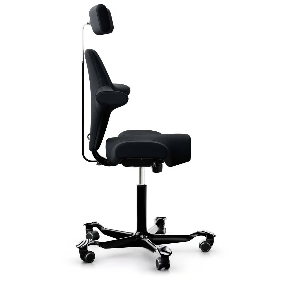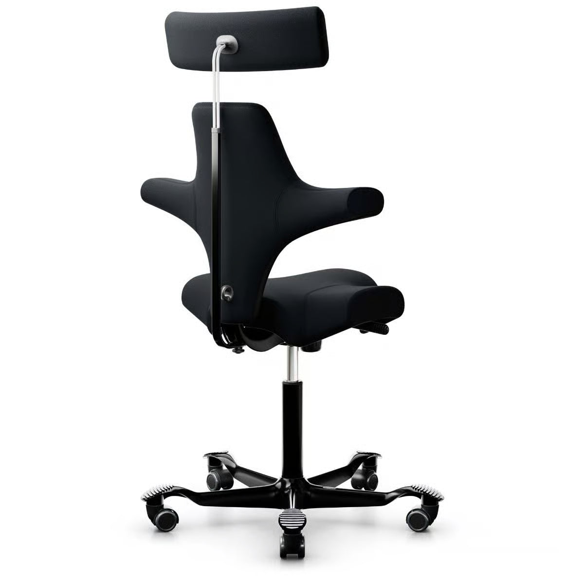 Ergonomisk kontorstol fra HÅG med et karakteristisk design som fremmer aktiv sitting. Denne modellen, Capisco 8107, har et unikt sadelformet sete som gir flere sittestillinger og er utstyrt med en moderne, minimalistisk stil. Det nye trekket i Select 60999 Black tilfører et stilrent preg til stolen.