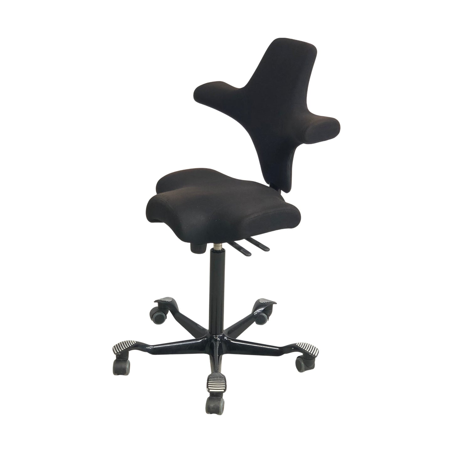 Praktisk Håg Capisco kontorstol i sort med en unik design som gir utmerket støtte og komfort. Denne ergonomiske kontorstolen er perfekt for lange arbeidsdager, og den justerbare høyden sikrer en optimal sittestilling.