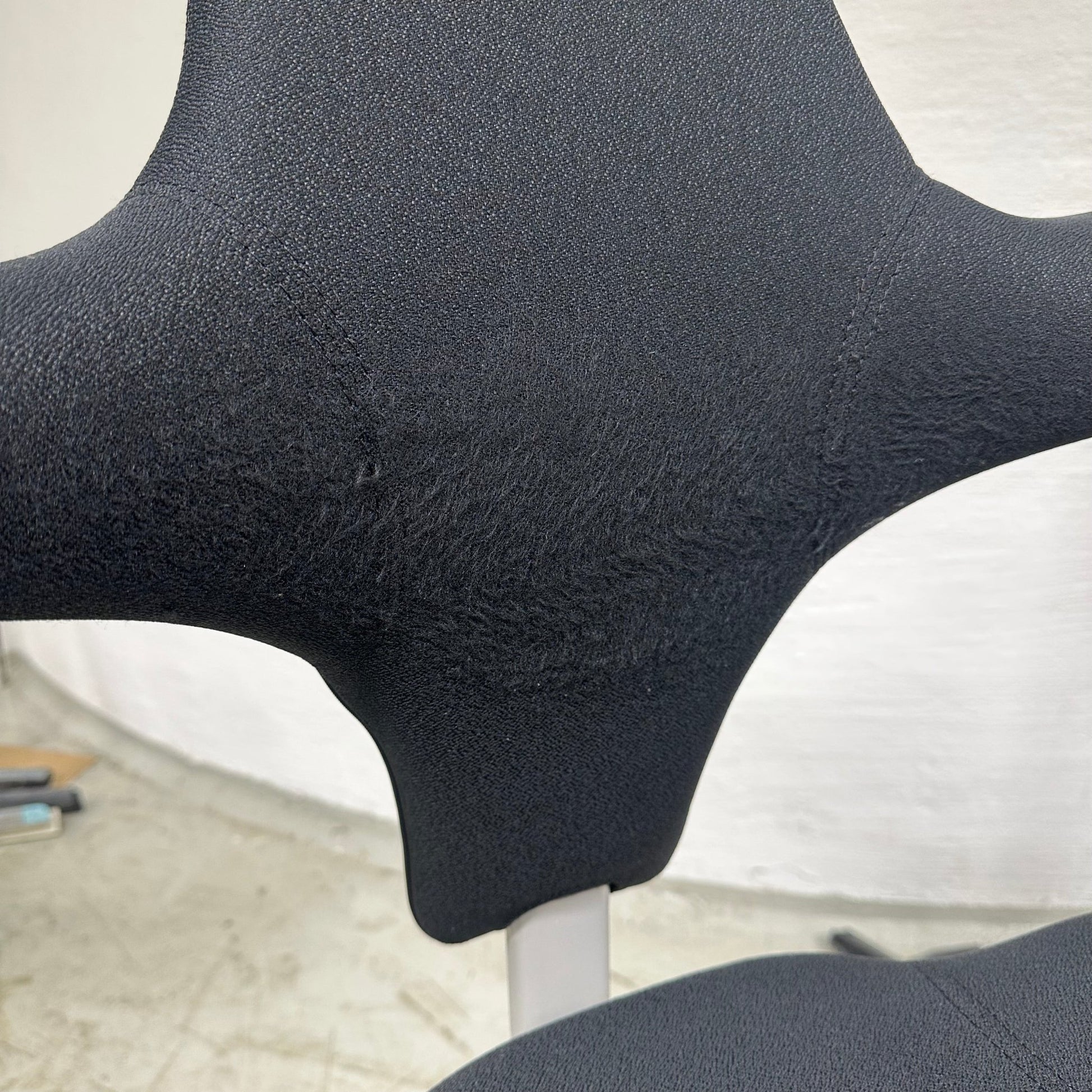 Stolen er i god stand med noen mindre bruksmerker, men helhetsinntrykket er fortsatt svært godt. Stoffet har noe slitasje på fremsiden av ryggen, dette er synlig. Alle justeringsmekanismer fungerer som de skal.