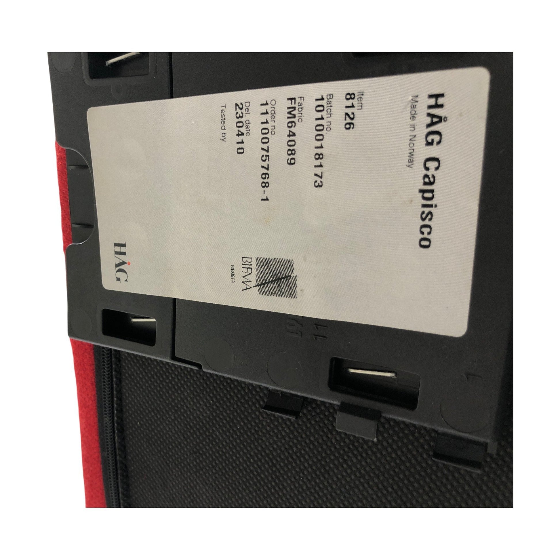 Ergonomisk kontorstol fra HÅG Capisco, utstyrt med et moderne og stilrent design. Denne stolen, uten sadelsete, har en livlig rød tekstilbehandling som gir et friskt preg til arbeidsområdet. Den er kjent for sin fleksibilitet og gir støtte til en aktiv sittestilling, perfekt for lange arbeidsdager.