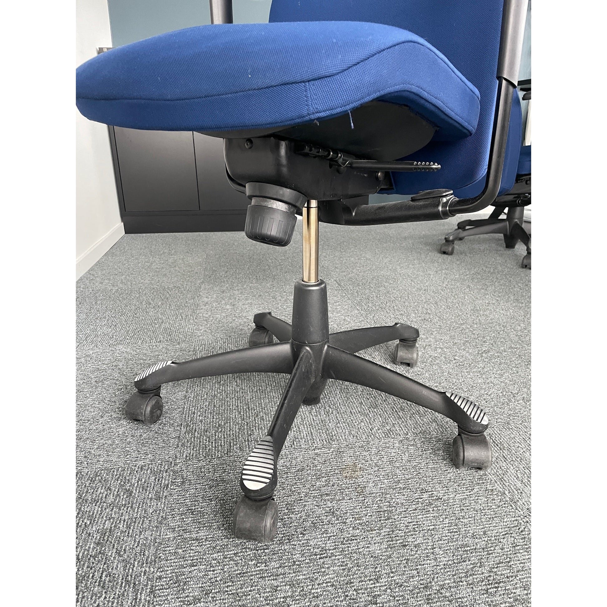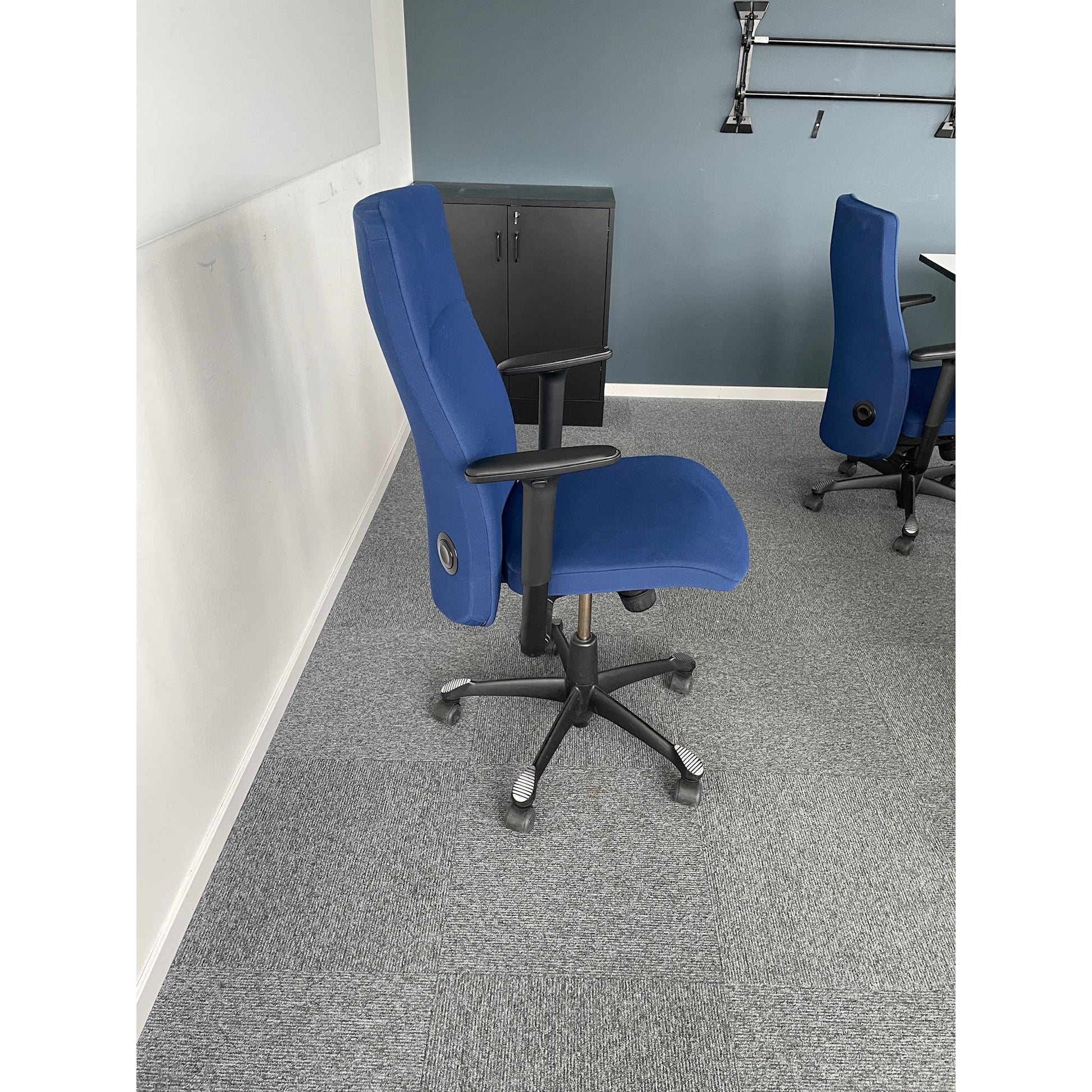 Stolen er i god tilstand med noen synlige på armlenene, som kommer av kontakt med bordplaten på møtebordet de har stått rundt. Helhetsinntrykket er fortsatt meget godt, og alle funksjoner fungerer som de skal.