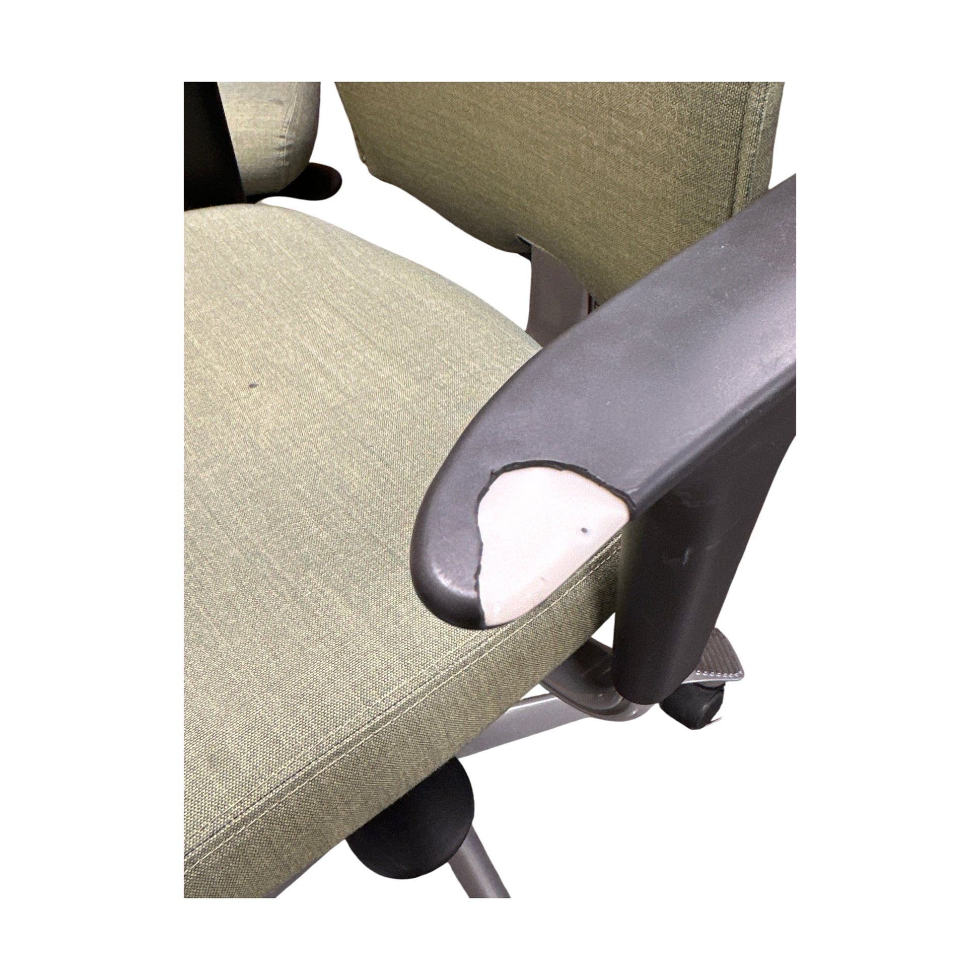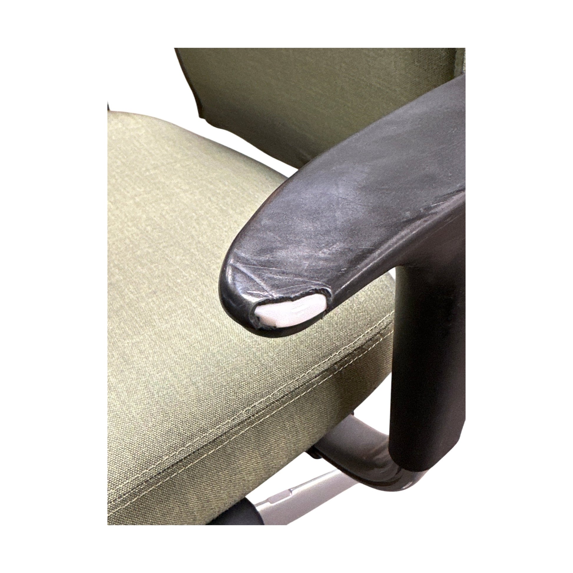 Stolen har synlig slitasje på deler av armlenene, men dette påvirker ikke komforten. Den har også generelle bruksmerker på bena, noe som gir den karakter, men den er fortsatt fult funksjonell.
