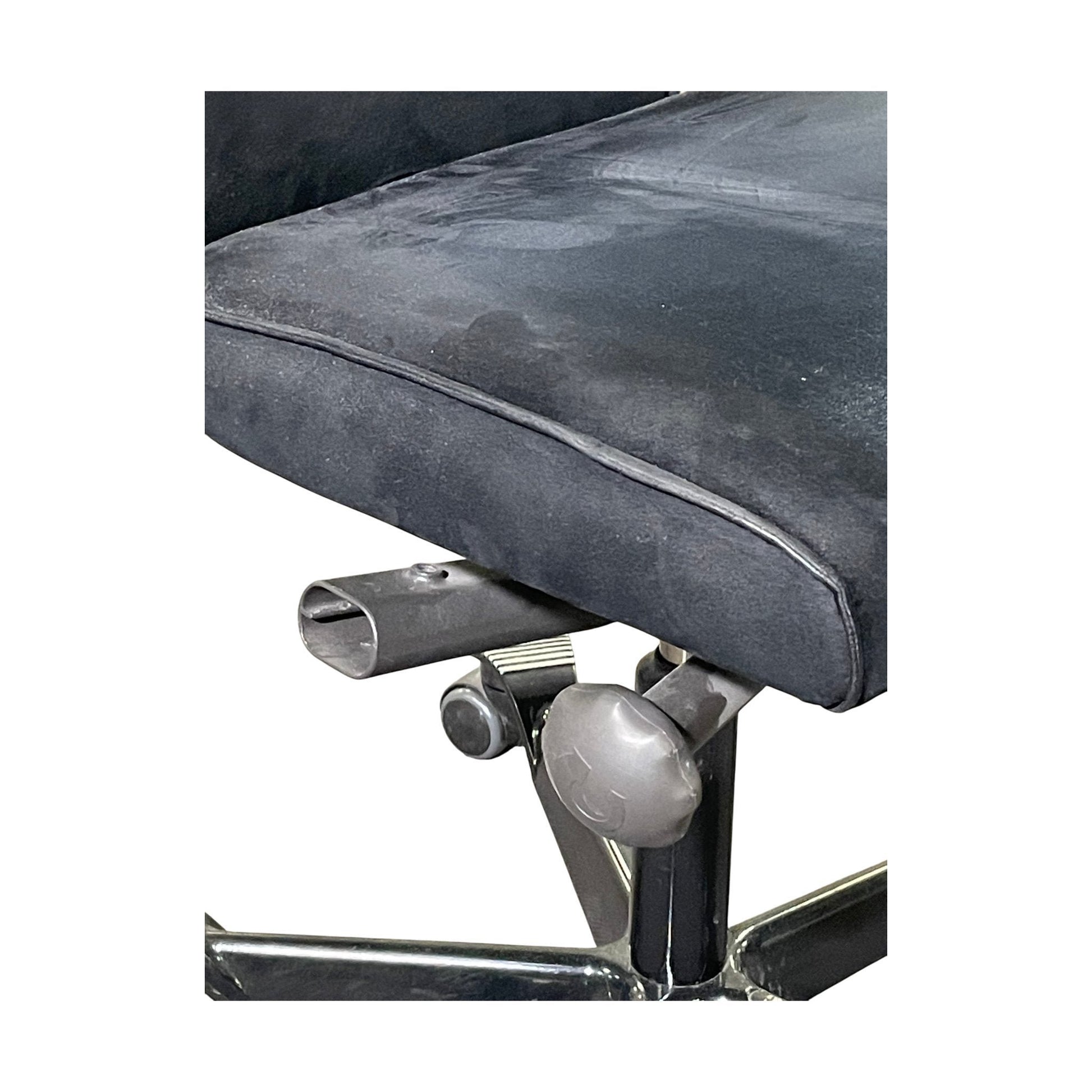 Stolen er i god tilstand med noen synlige bruksmerker på stoffet. Helhetsinntrykket er godt, og alle justeringsfunksjoner virker som de skal.