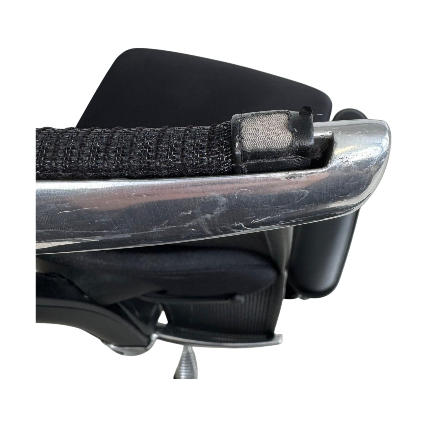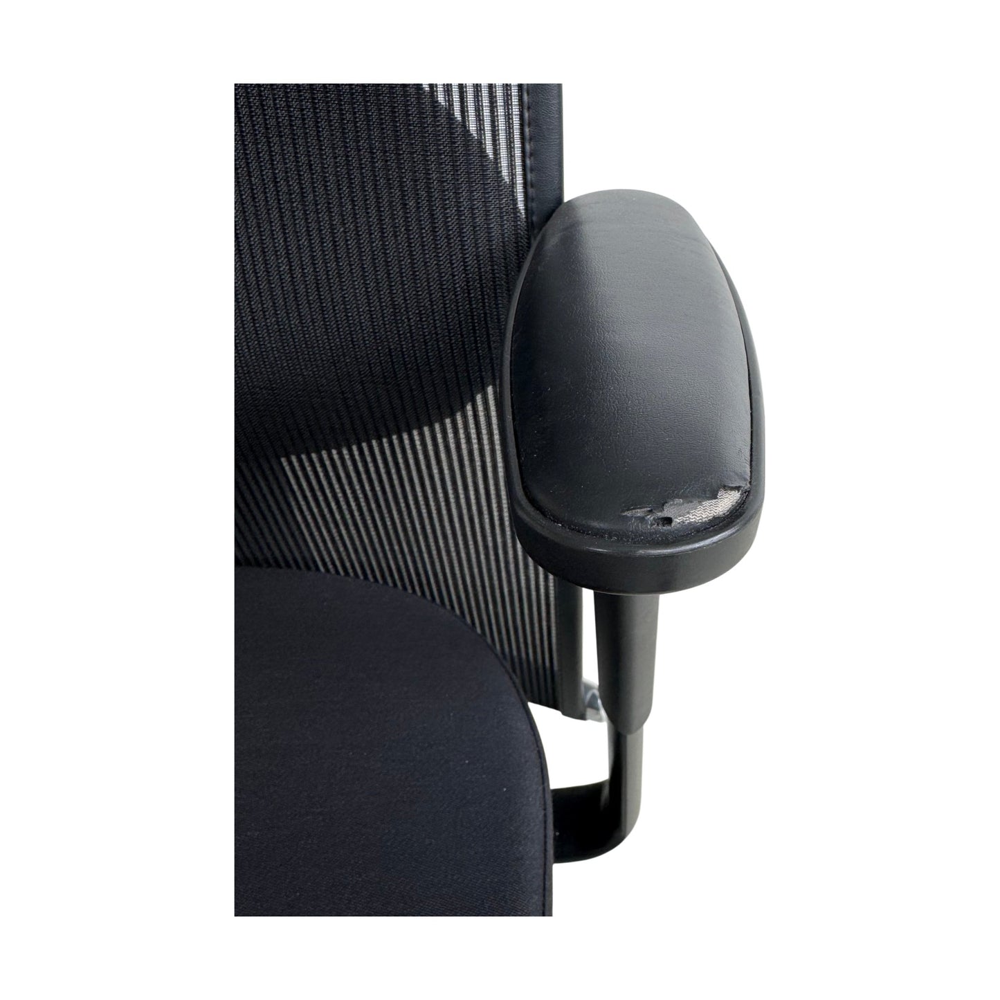 Stolen har noen skader på armlener og toppen av stolryggen, men dette påvirker ikke dens funksjonalitet. Den er ellers i god stand og klar for bruk.