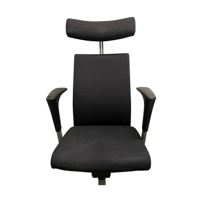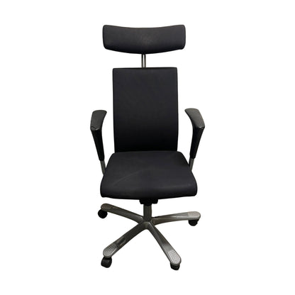 Komfortabel kontorstol fra Håg med grå ben og nakkestøtte. Stolen gir god ergonomisk støtte for lange arbeidsdager og er ideell for hjemmekontoret. En perfekt løsning for å forbedre både stil og funksjonalitet.