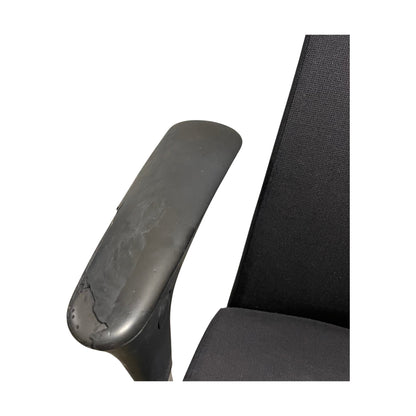 Stolen har tydelige bruksmerker, men dette påvirker ikke komforten eller funksjonaliteten. Sett den inn i ditt arbeidsmiljø og opplev den gode sitteopplevelsen.