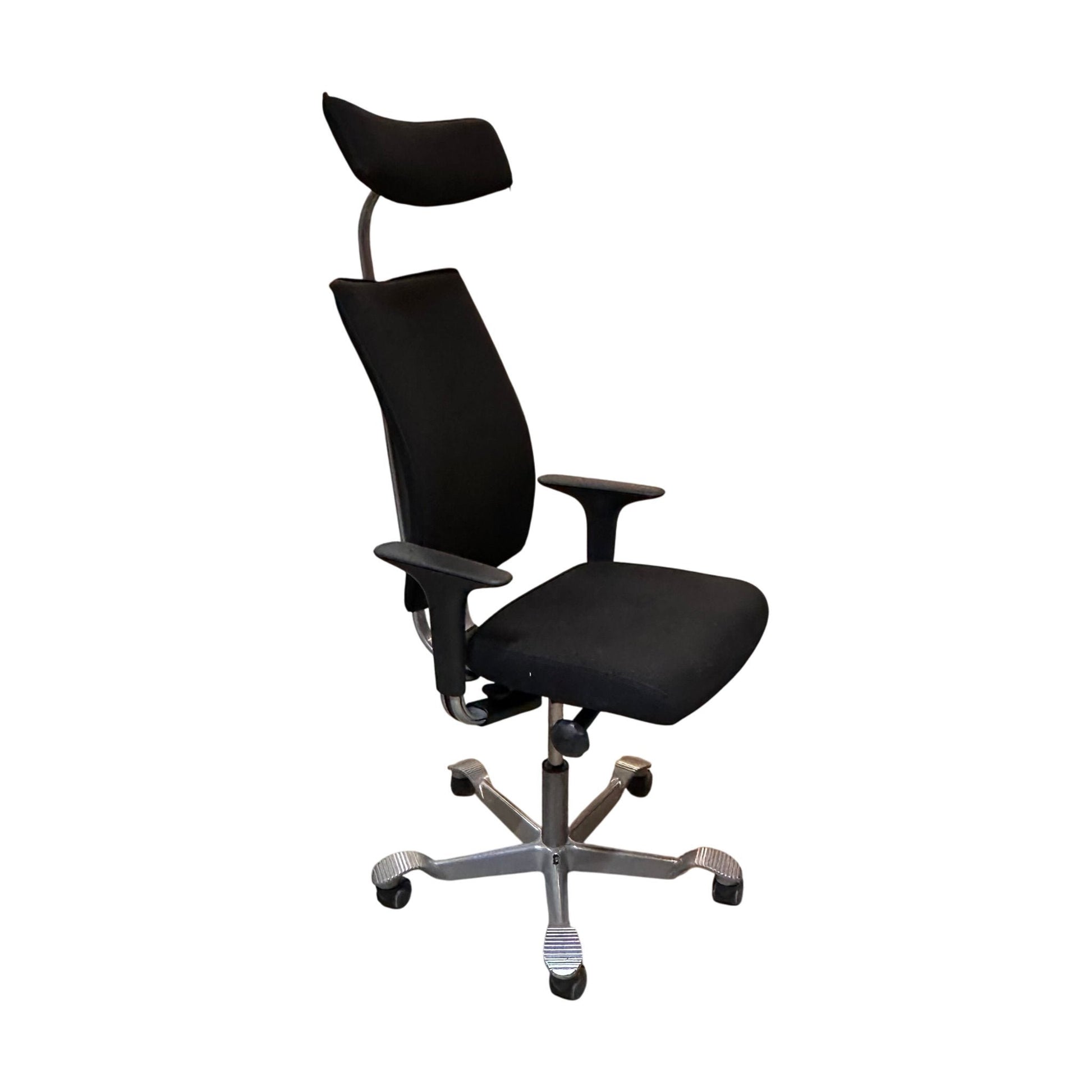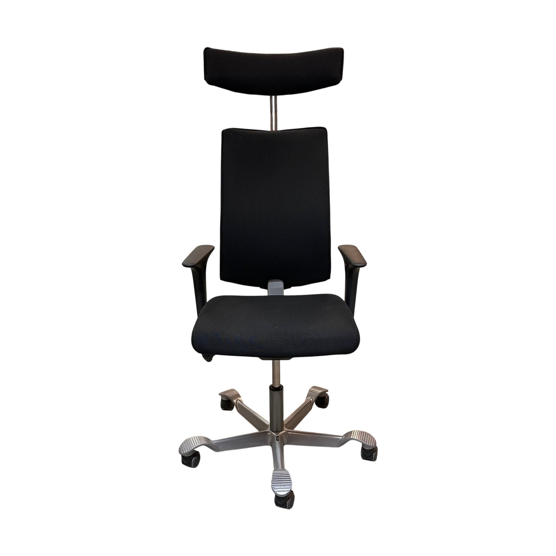 Ergonomisk kontorstol fra HÅG som kombinerer stil og komfort i sin enkle, sorte design. Denne stolen er ideell for kontormiljøer og gir svært god støtte til ryggen takket være sin justerbare nakkestøtte.