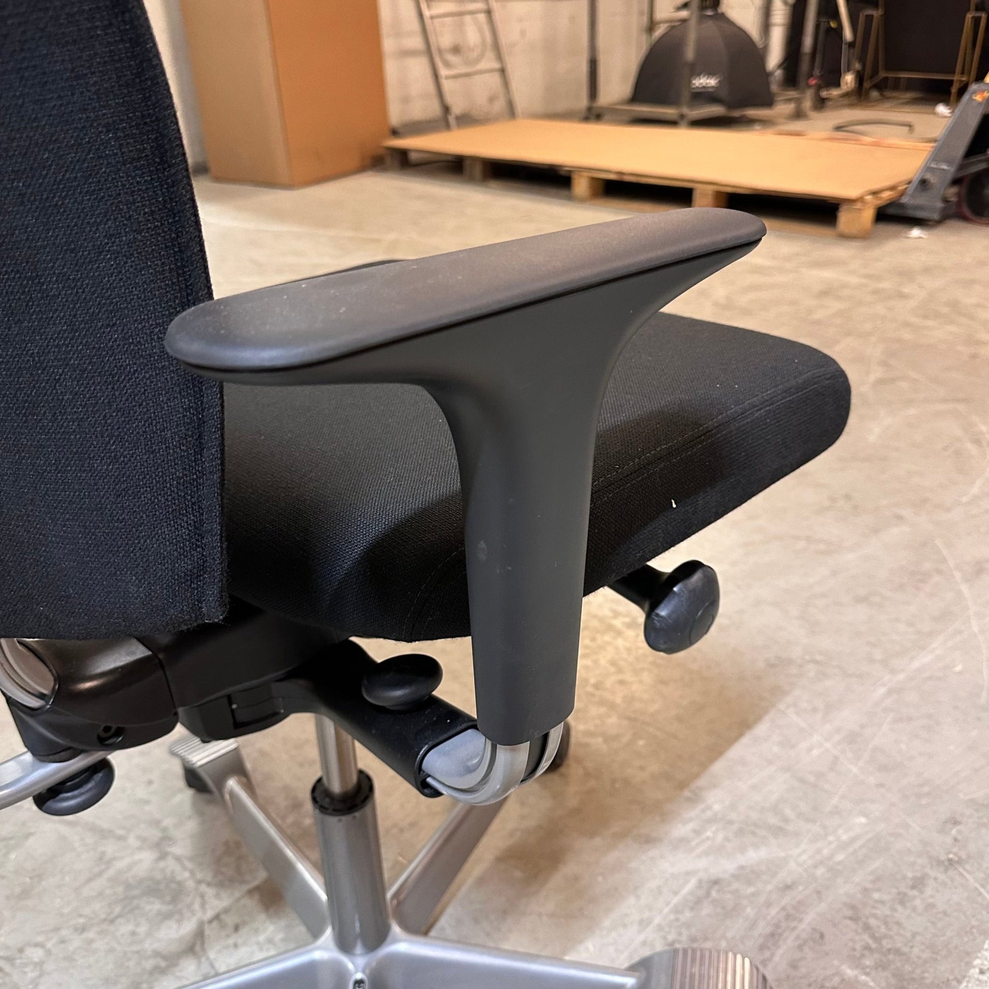 Stolen er i god tilstand med noen mindre bruksmerker som ikke påvirker funksjonaliteten. Alle justeringsmekanismer fungerer som de skal, og stoffet er rent og pent.