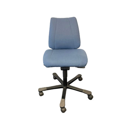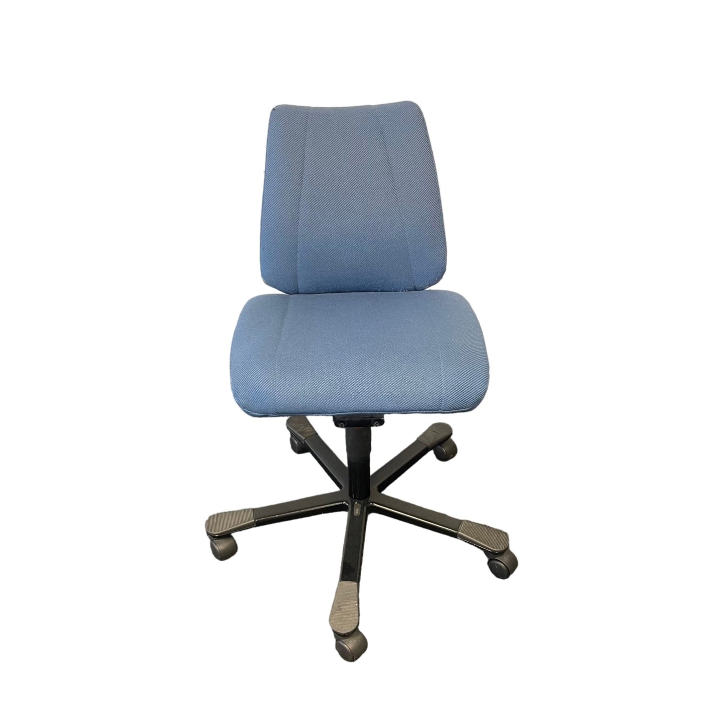 Komfortabel HÅG Credo kontorstol med justerbar sittehøyde og ergonomisk støtte. Blått stoff gir et stilrent preg, og stolen passer godt til både kontor og hjemmekontor.
