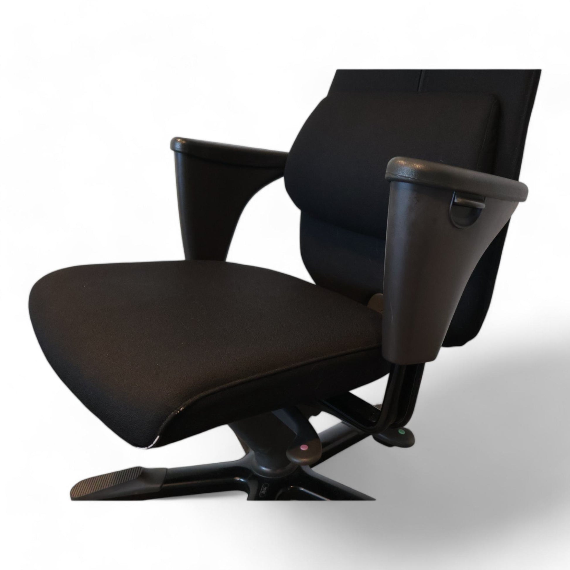Hev/senk-funksjonen er treig, men fungerer med litt hjelp. Stolen er ellers i god stand og klar til bruk.