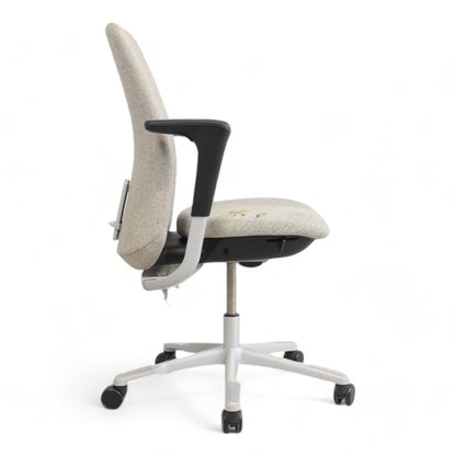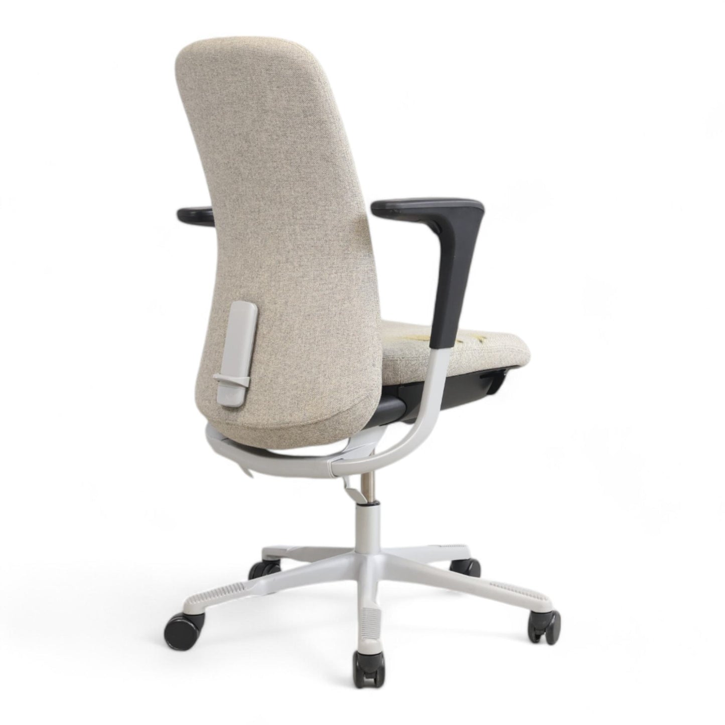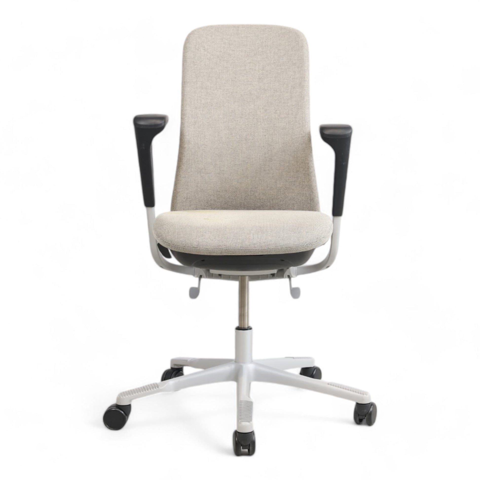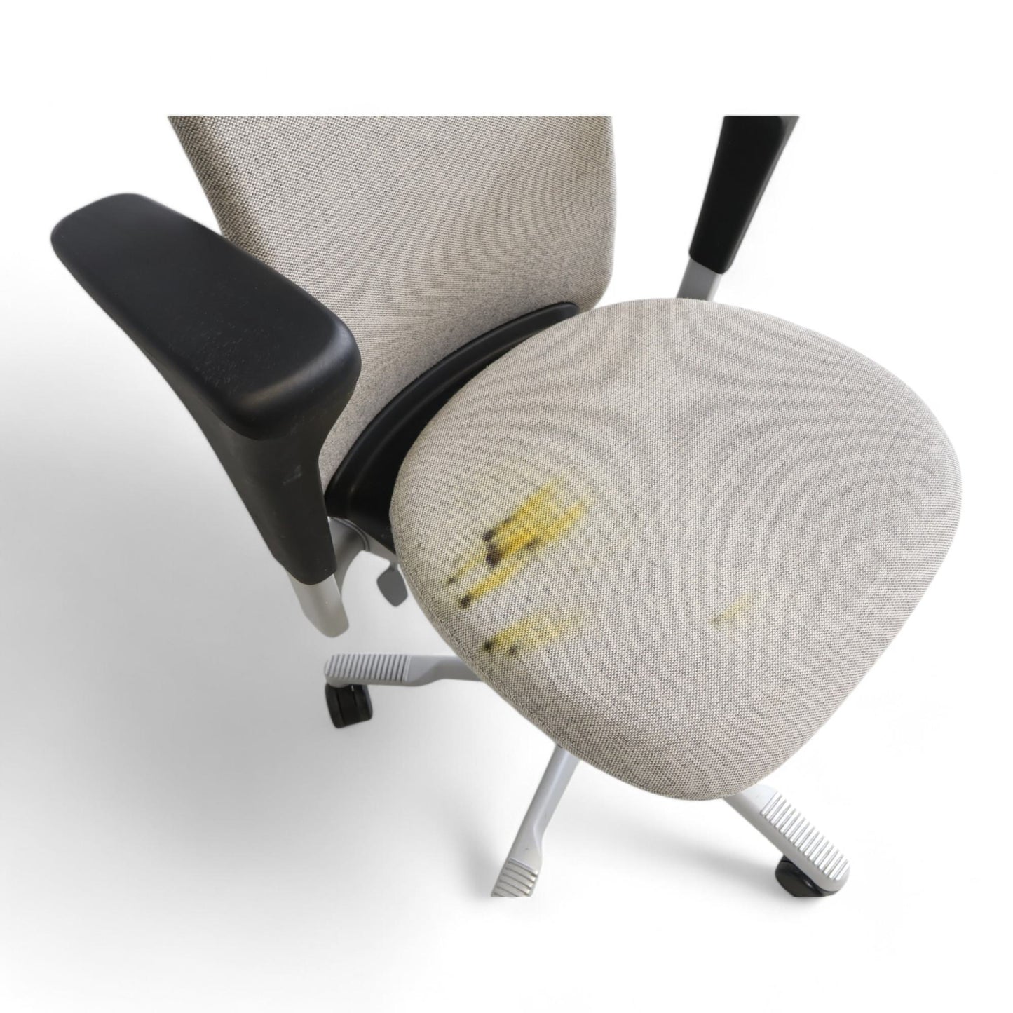 Det er tydelige flekker på sitteputen. Armlenene har også noen bruksmerker, se de siste produktbildene - dette er trolig blekk som ikke går bort i rens. Ellers i helt fungerende stand.