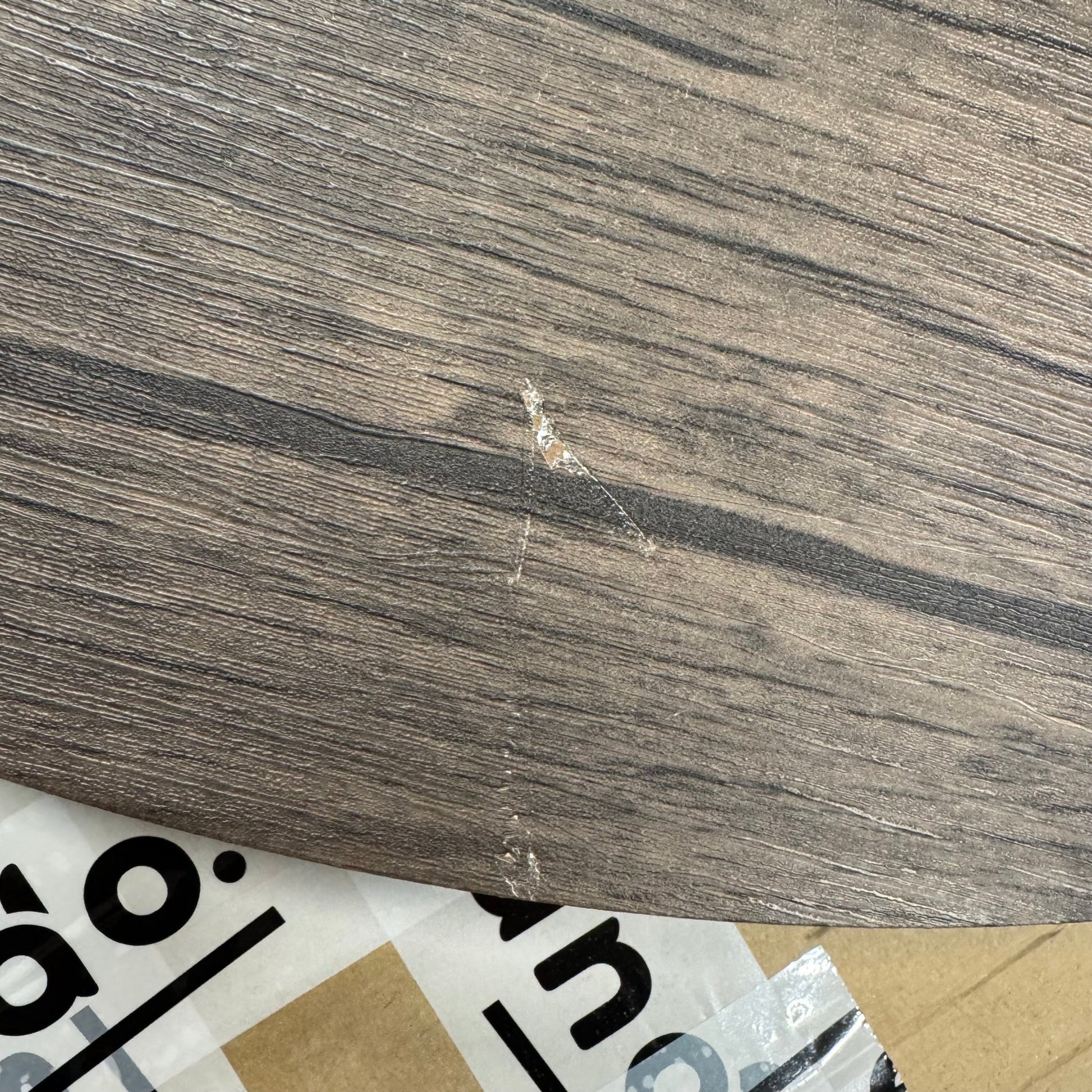 Bordet er i god stand og gir et rustikt preg med sitt unike mønster, uten merkbare skader eller slitasje.