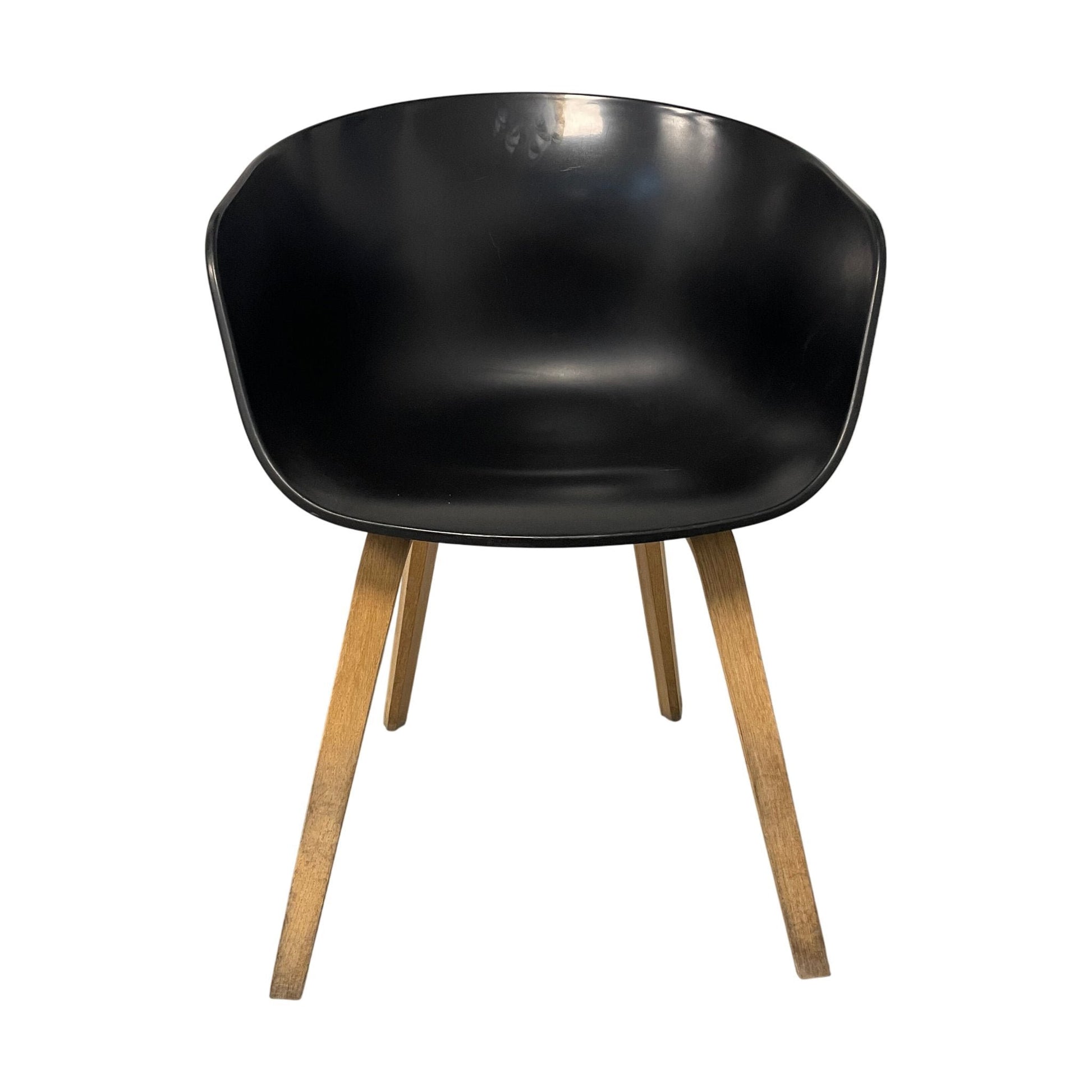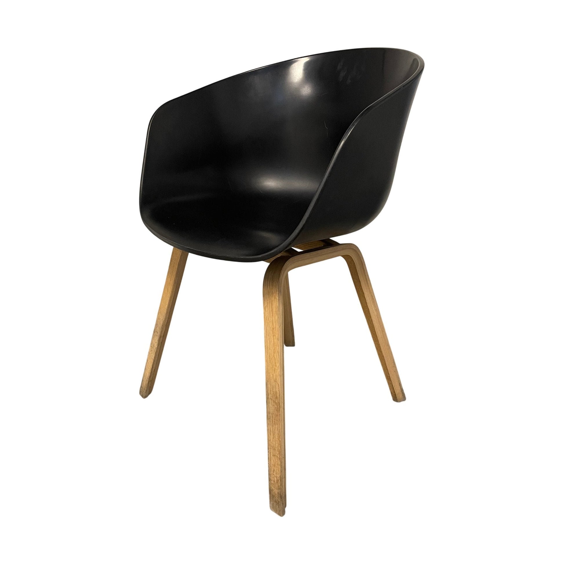 Spisestol med svart plastsete og treben i lys eik. Den har en rund og moderne form som gir en innbydende sitteopplevelse. Stolen kjennetegnes av sitt minimalistiske design som passer inn i ulike innredningsstiler.