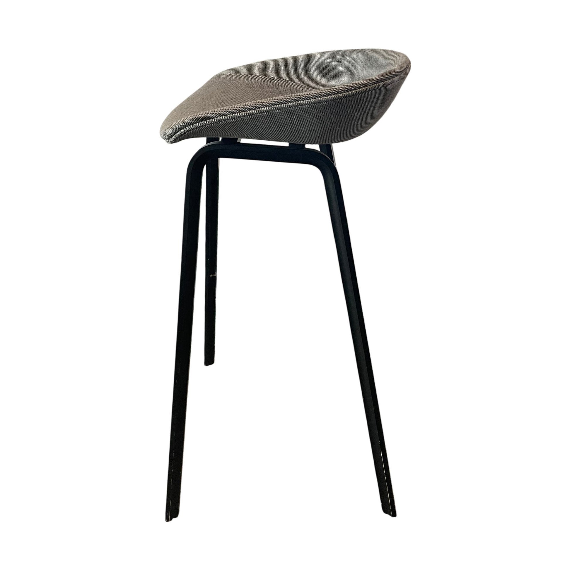 Hay about a stool barstol har et stilrent design med en moderne form. Den har et mykt sitteområde trukket i grått stoff og slanke, svarte ben som gir en elegant kontrast. Denne barstolen passer perfekt til et barbord og gir en komfortabel sitteopplevelse.