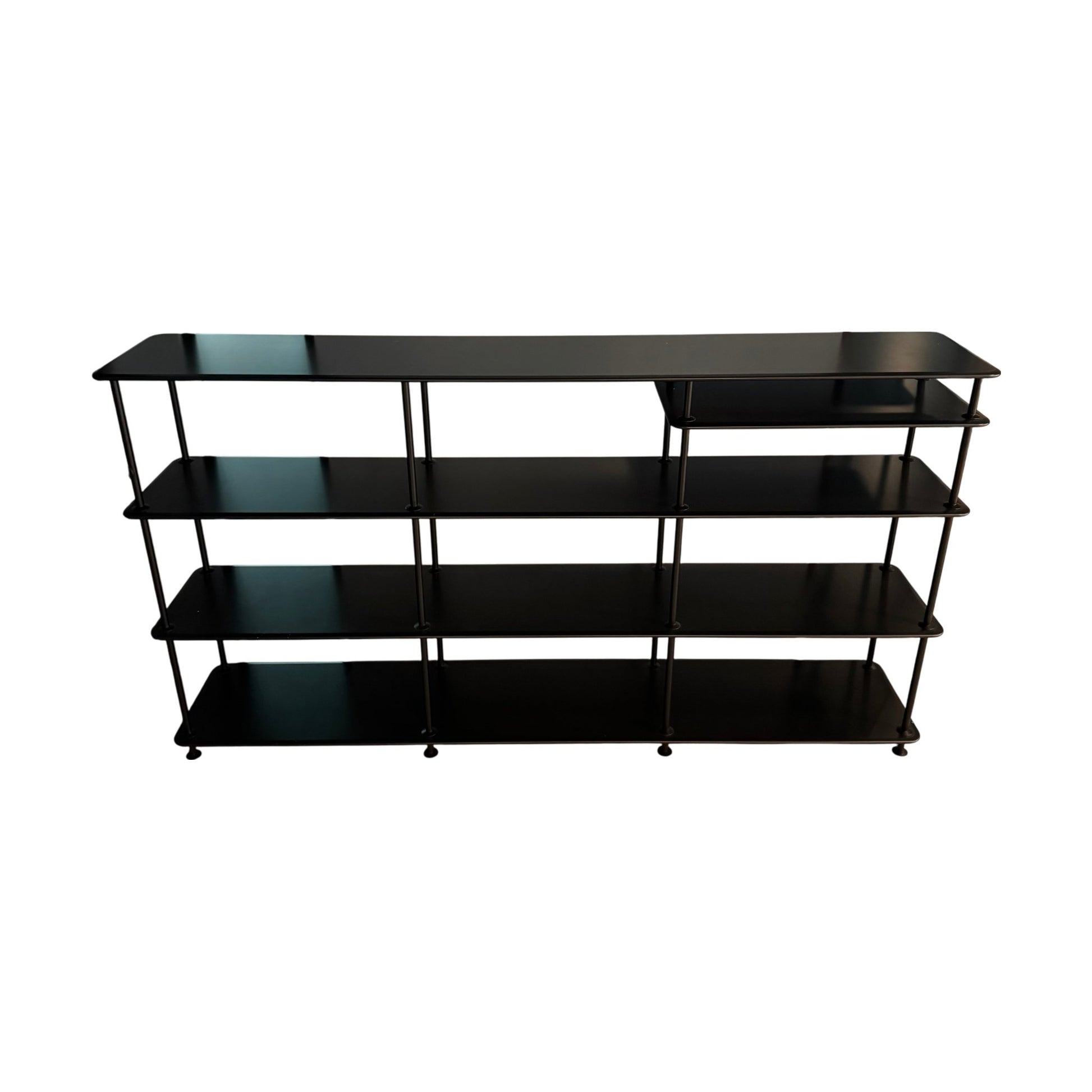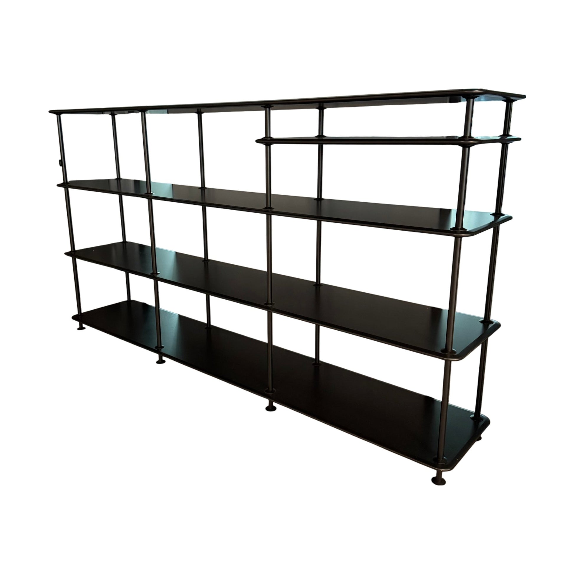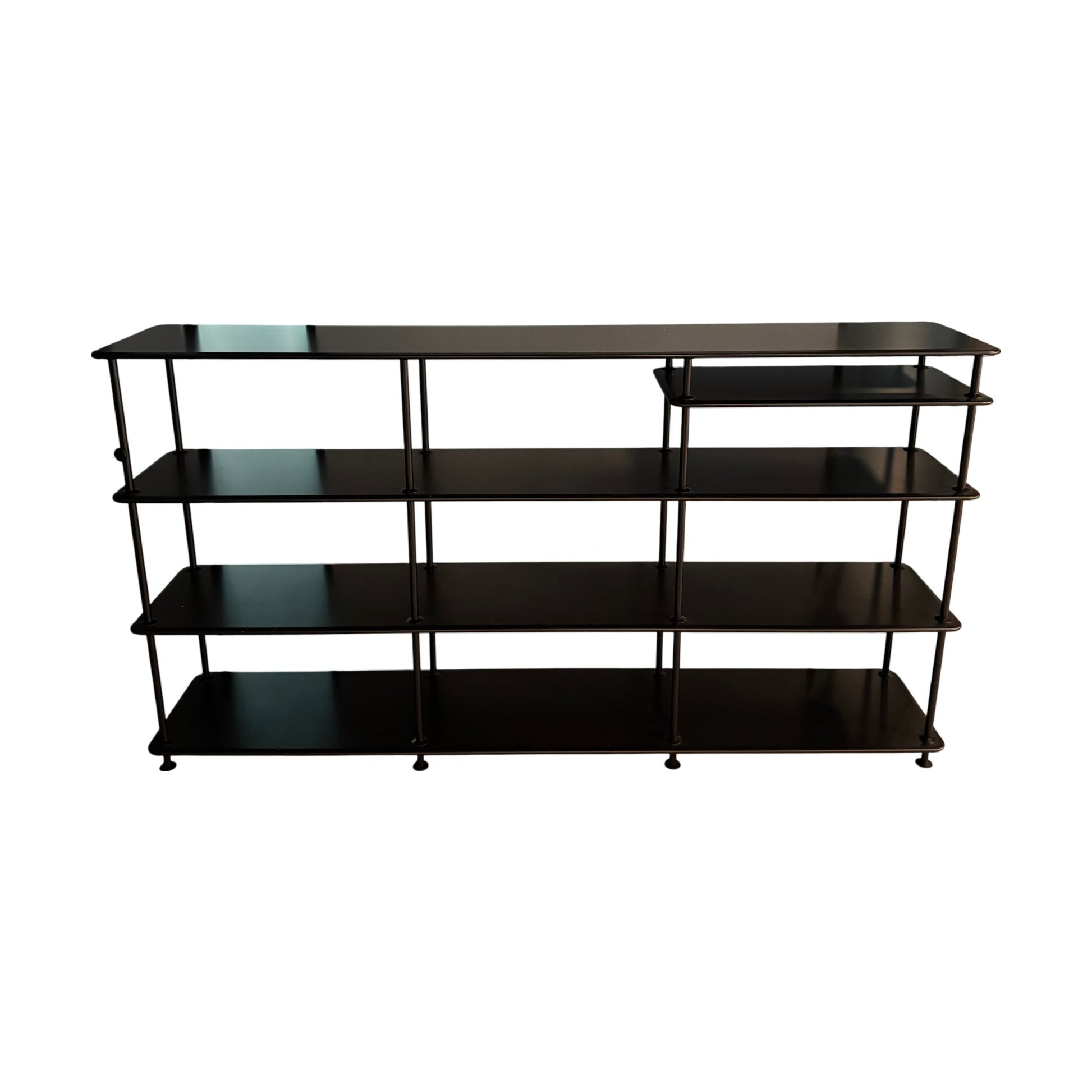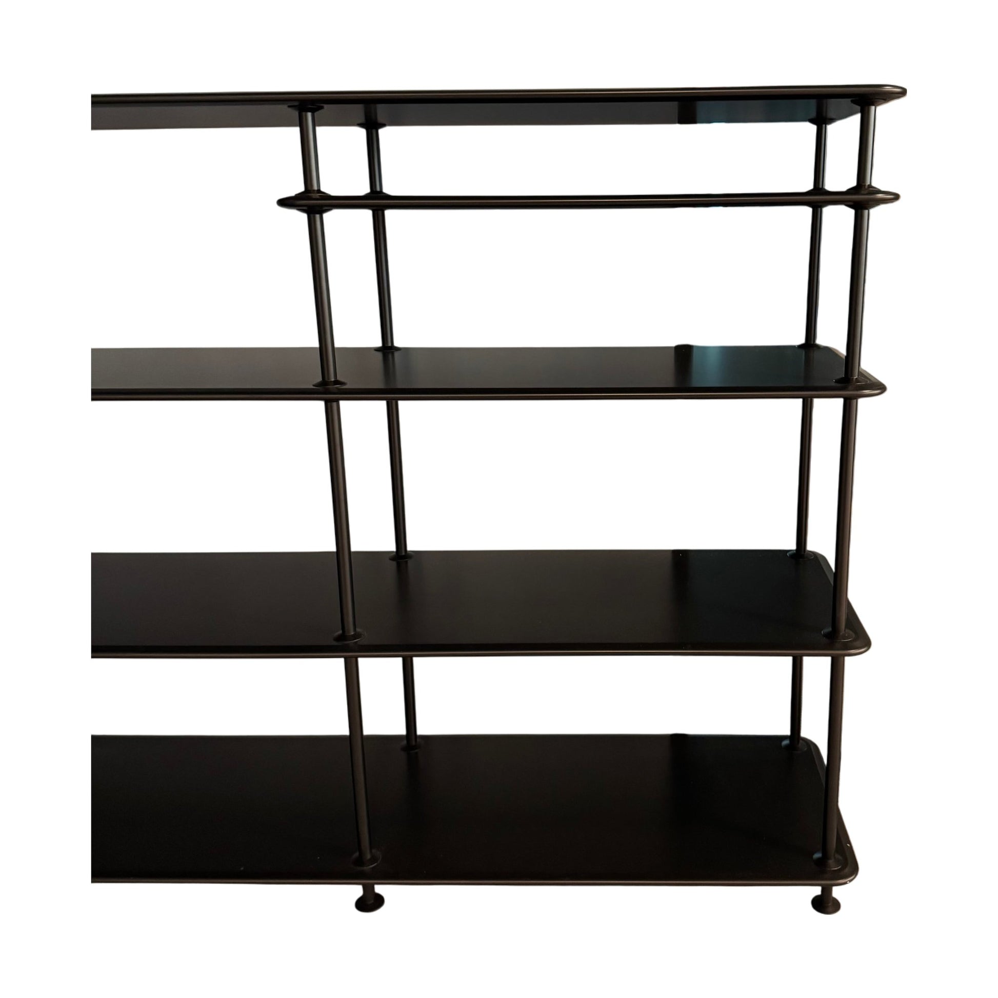 Praktisk og stilren hyllereol i svart metall, perfekt til kontoret. Med flere hyller gir den effektiv oppbevaring og enkel tilgang til bøker, dokumenter eller dekorative gjenstander.
