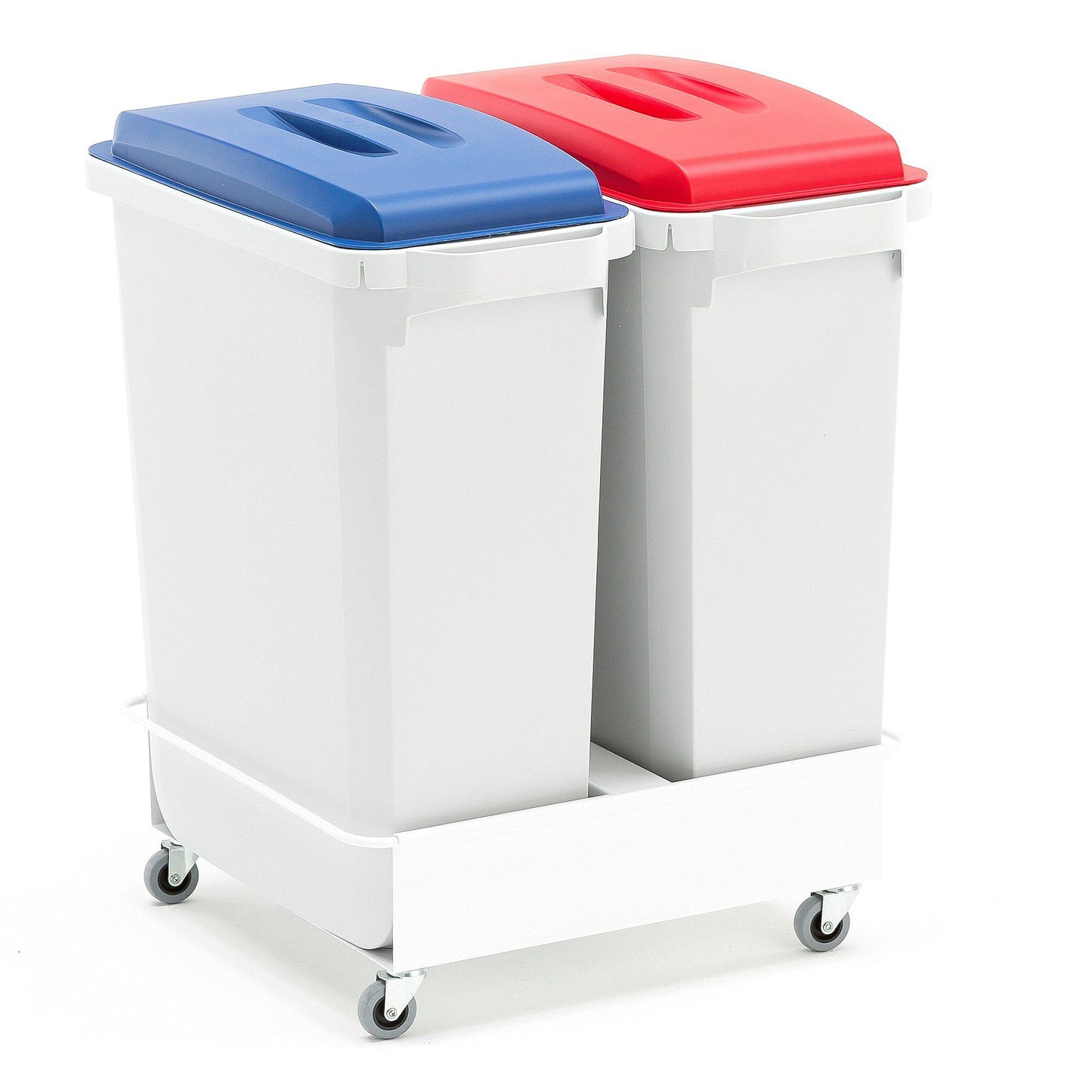 Helt nytt | 2 stk avfallsbeholder, 60 liter, med rødt/blått lokk og tralle