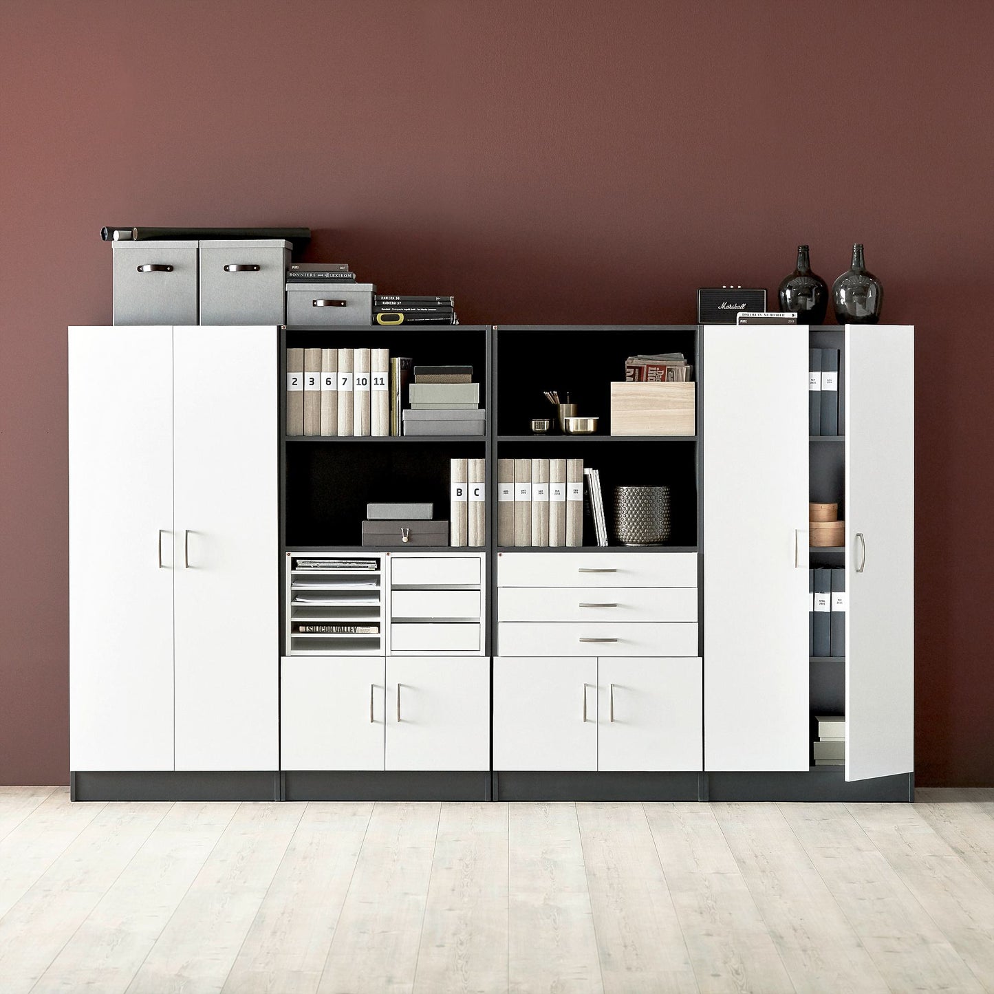 Helt nytt | Bokhylle FLEXUS, H1725 B760 D415 mm, grå laminat