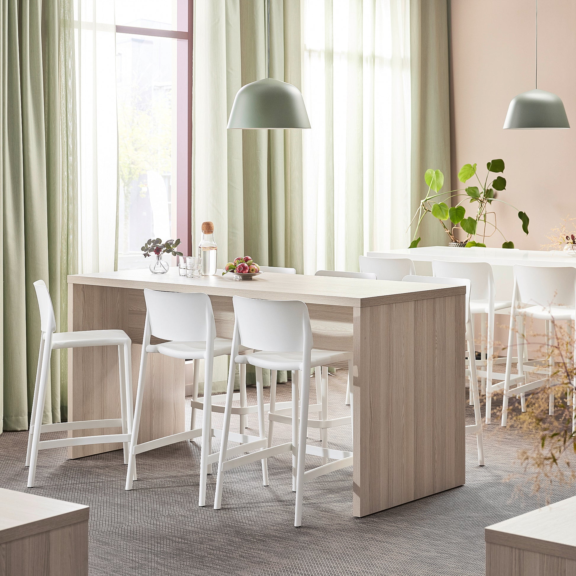 Stødig gavlbord som passer i både kafeer, kantiner, åpne rom osv. Kan kombineres med høye stoler eller barkrakker, eller brukes som ståbord. Bordet har slitesterke overflater som passer godt i miljøer der møblene er i daglig bruk.