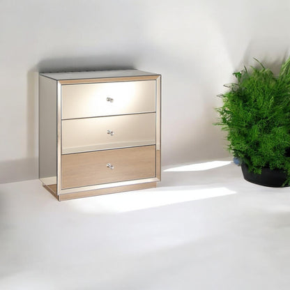 Med tre romslige skuffer tilbyr Edinburgh Kommode rikelig med oppbevaringsplass for alle dine eiendeler. Skuffene er utstyrt med elegante krystall knotter, som gir en ekstra touch av luksus og gjør det enkelt å åpne og lukke skuffene. Den solide speilsokkelen gir kommoden ekstra stabilitet og holdbarhet.