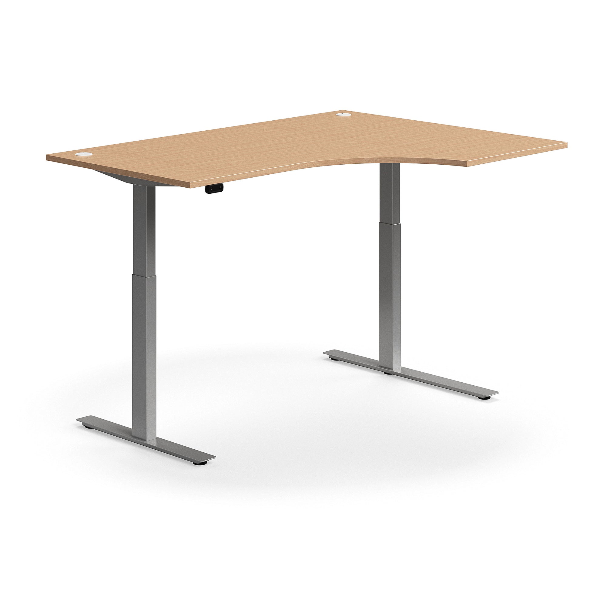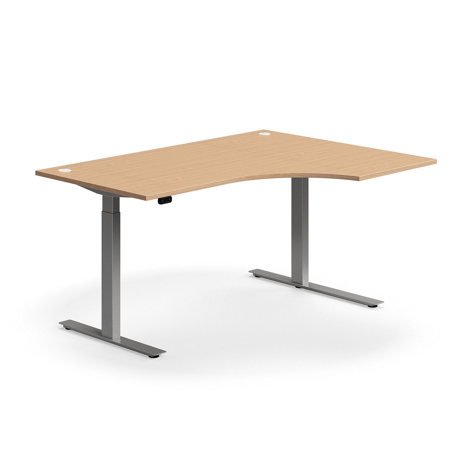 Helt nytt | Hjørneskrivebord FLEXUS, hev/senk, L1600 B1200 mm, sølv, bøk