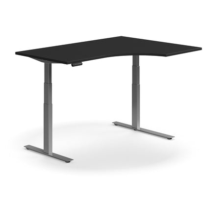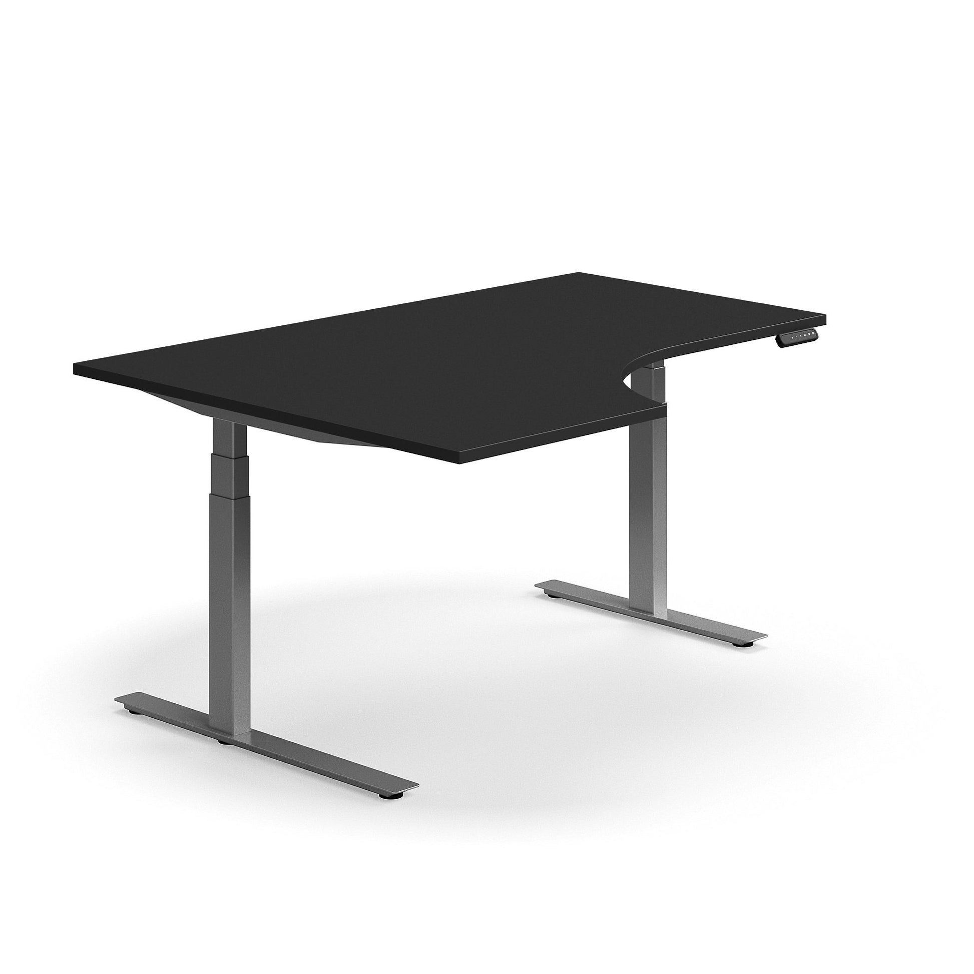 Helt nytt | Hjørneskrivebord QBUS, hev/senk, L1600 B1200 mm, sølv, svart