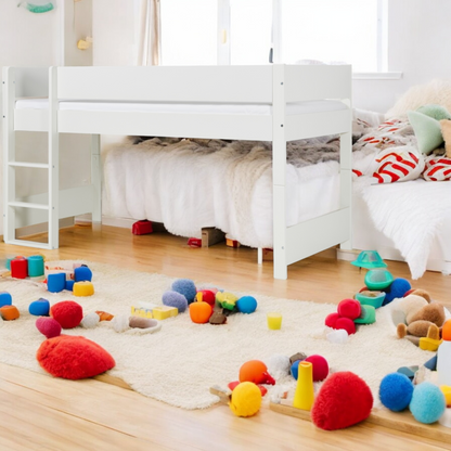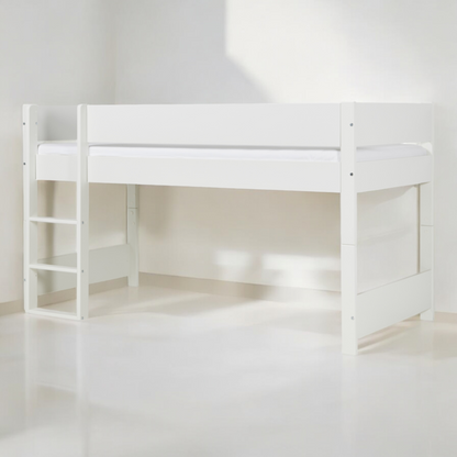 Huxie Halvhøy Barneseng med Sengehest fra den danske leverandøren Manis-h er den perfekte løsningen for å utnytte plassen under sengen til lek eller oppbevaring. Denne sengen er designet med tanke på både sikkerhet og funksjonalitet, og gir barnet ditt en trygg og komfortabel natts søvn. Med en stige som kan monteres på både høyre og venstre side, er det enkelt for barnet å komme seg opp og ned fra sengen.